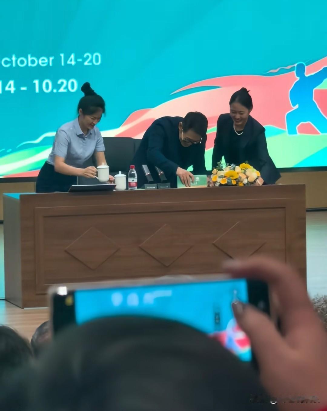 李连杰上台准备发言,看到桌上的黄色花束,弯腰小心翼翼挪到旁边,这一动作暴露了文化默契。在咱们东方文化里,黄色花在特定场景容易引发不好联想,人坐着露头,前面摆黄花,这画面谁看了都膈应。 现在很多发言席、演讲台搞得花里胡哨,又是花又是装饰。其实演讲重要的是传递思想和信息,花花草草根本多余。一个话筒、一个茶杯、一个名签就够了。这也提醒活动组织者,得平衡好仪式感和功能性,尊重文化背景,别让多余装饰踩了“文化雷区”。