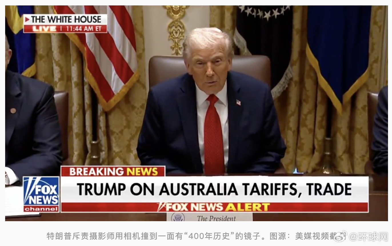 #美媒关注白宫镜子事故#【“镜子事故”,特朗普中断会议斥责摄影师:你别撞坏它!那镜子有400年历史……】#特朗普斥责摄影师别撞坏古镜# 据福克斯新闻网、美国《人物》杂志等美媒报道,当地时间20日,美国总统特朗普在白宫会见到访的澳大利亚总理阿尔巴尼斯时,中断会议斥责了一名摄影师,因为后者不小心用相机撞到了一面有“400年历史”的镜子。福克斯新闻网将这一幕称为“镜子事故”。