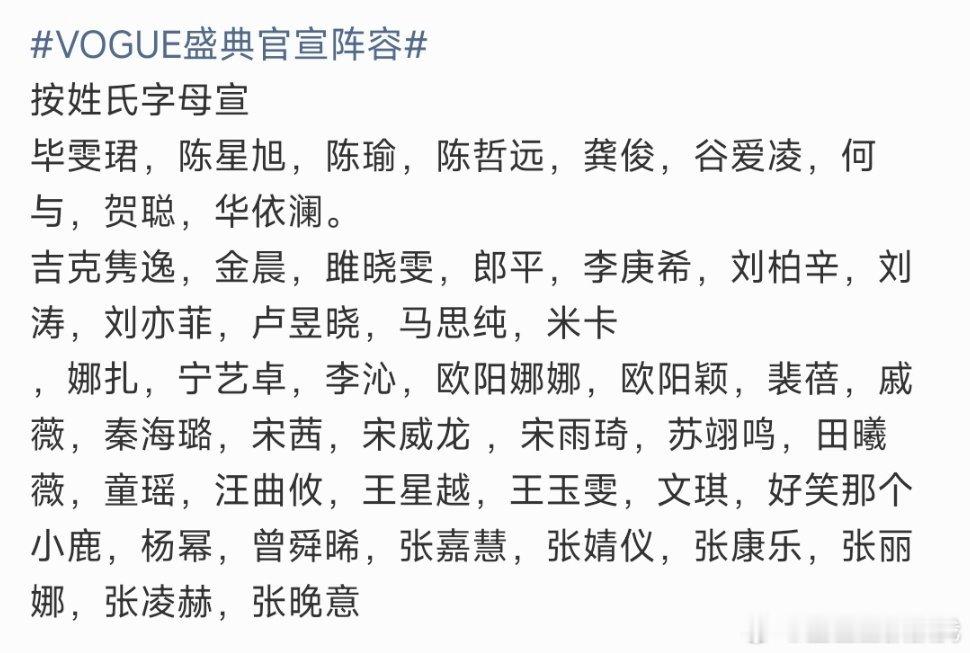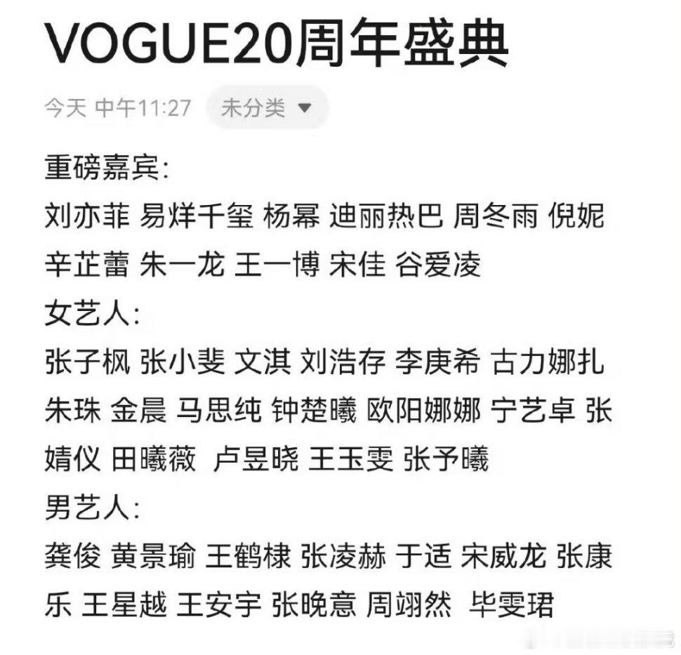 网传VOGUE盛典的阵容与实际VOGUE盛典的阵容差距[吃惊]这些王一博迪丽热巴易烊千玺朱一龙宋佳辛芷蕾倪妮王鹤棣檀健次都没来……VOGUE盛典官宣阵容