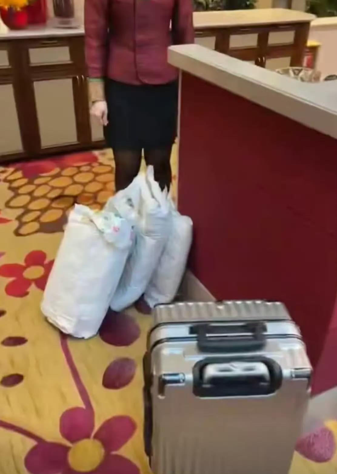 游客入住澳门酒店,把房间的枕头偷了,退房的时候被发现了,还一副理直气壮毫无悔过的