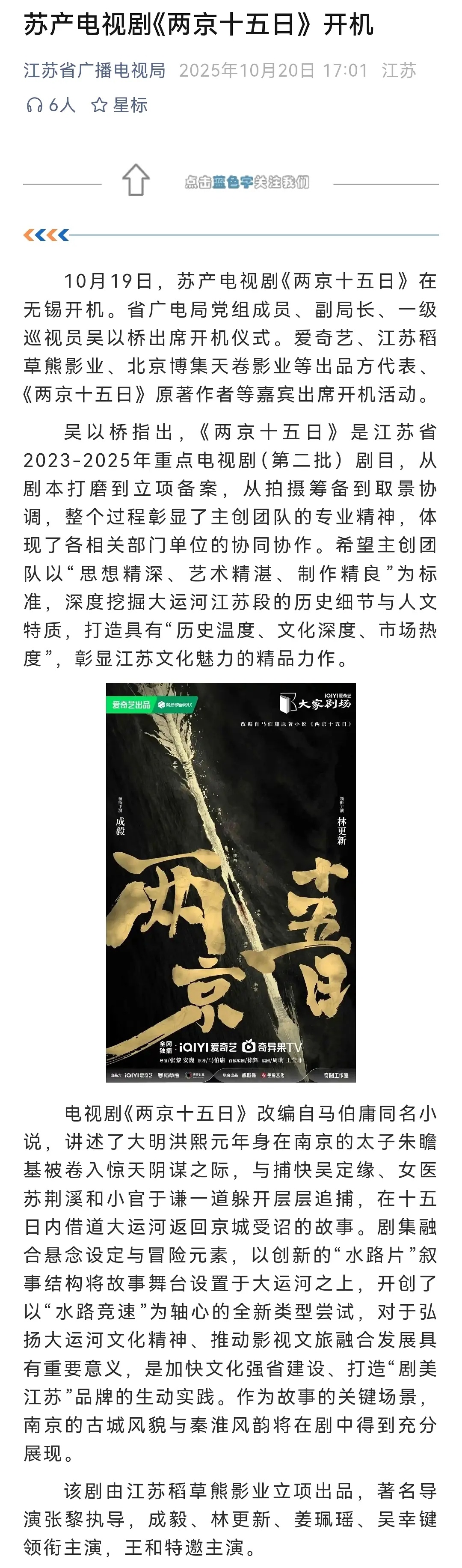 成毅《两京十五日》开机省广电局领导都去了 ​​​