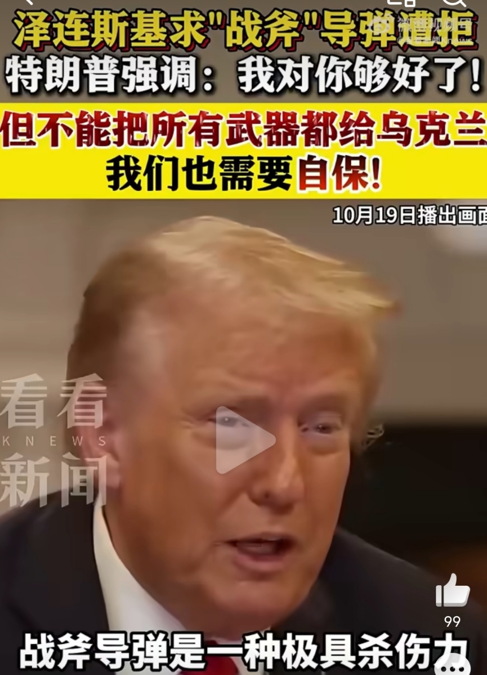 特朗普说武器不能都给乌克兰特朗普称“不能把所有武器都给乌克兰”,看似是考虑美国自身防务,实则暗含对冲突升级的担忧。“战斧”导弹射程可覆盖莫斯科,一旦援乌可能激化美俄矛盾,这与他推动停火的诉求相悖 。但这种单边决策忽视了欧洲安全格局,若关键武器断供,乌军或丧失战场主动权,反而可能让和平谈判陷入被动。