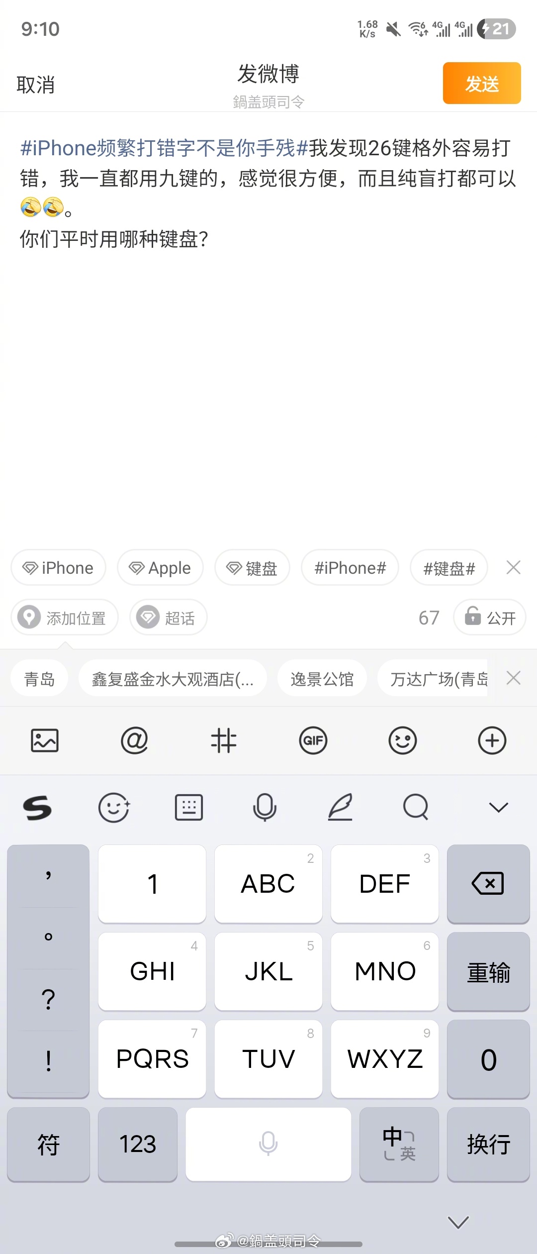 #iPhone频繁打错字不是你手残#我发现26键格外容易打错,我一直都用九键的,