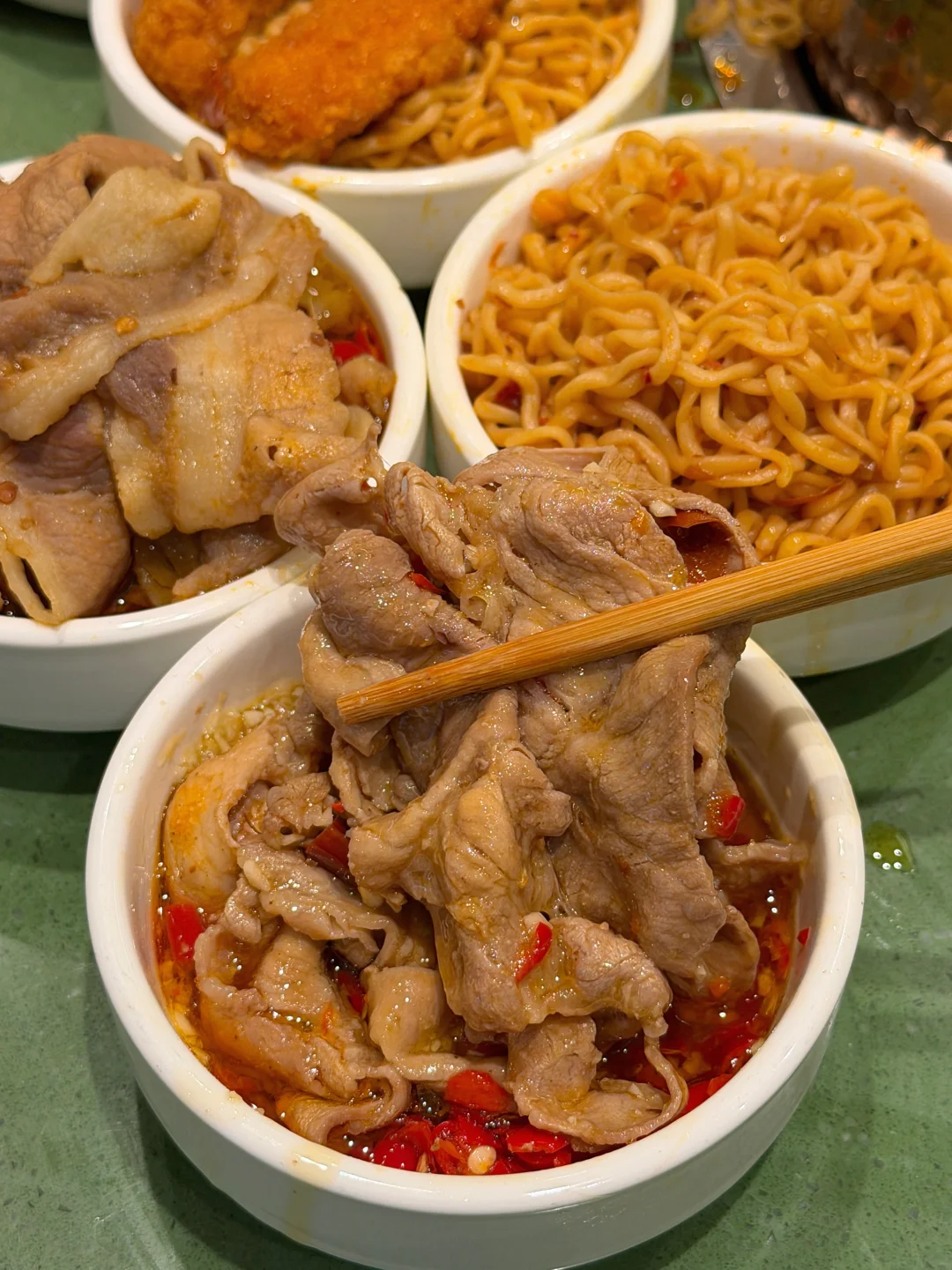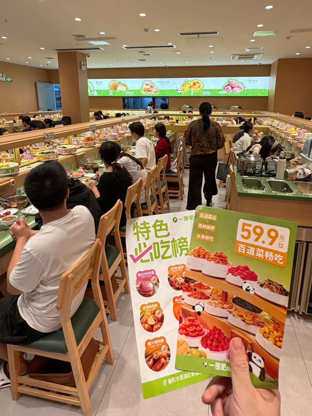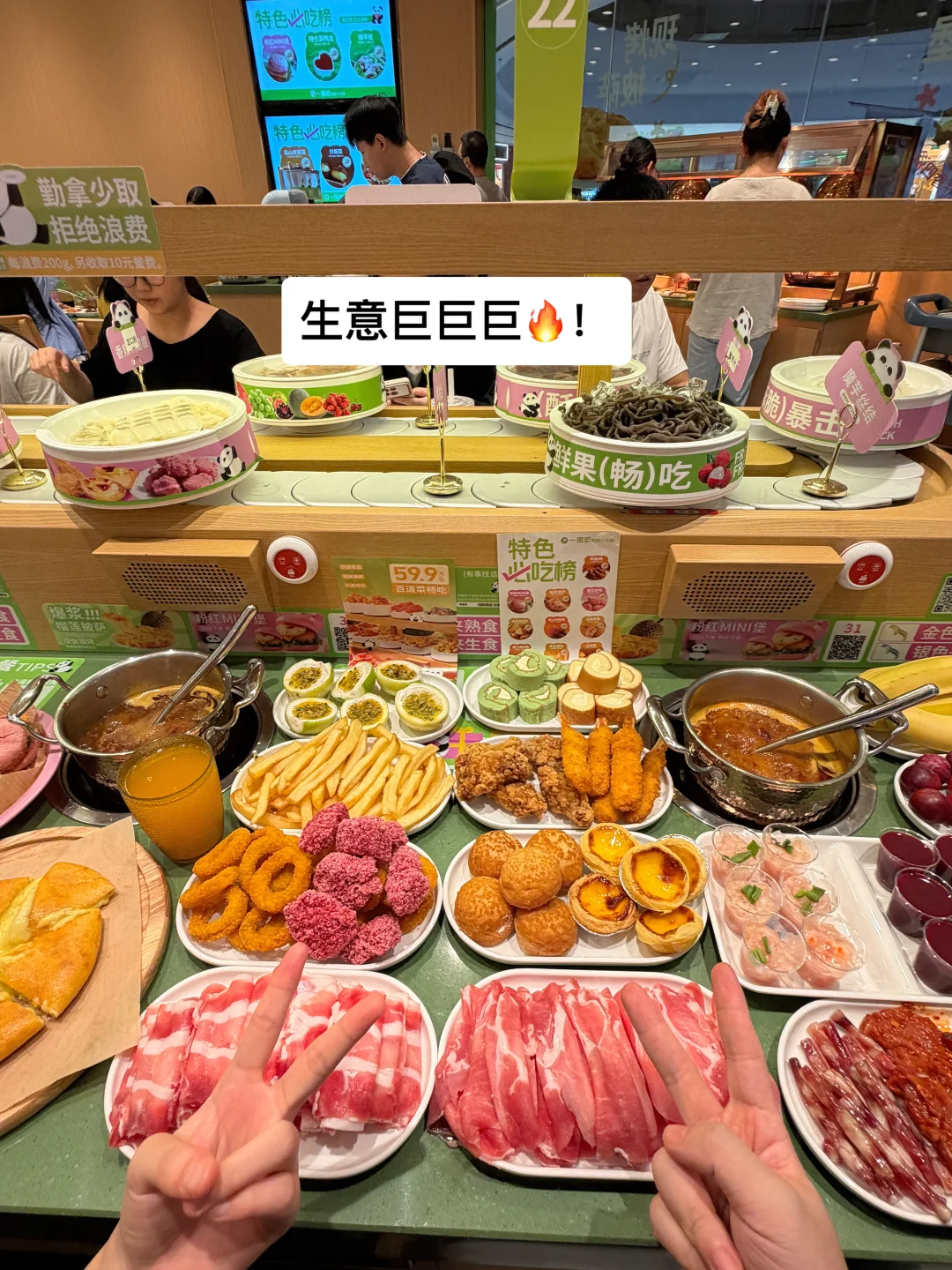 会带每一任对象都去吃的穷鬼快乐屋! 一周来吃3次了!吃不腻!人均才59r!!! 百来道菜品和烤肉都不限量自助!各种甜点、水果、肉卷、小吃、饮品…无限续…谁懂啊!!稳稳的可以把老板吃垮了🤣🤣爆浆榴莲披萨、粉色流心mini汉堡、樱花炸鸡、蛋挞、冰淇淋泡芙…都好好吃!! 🧭导航这个地方:一围肥自助小火锅