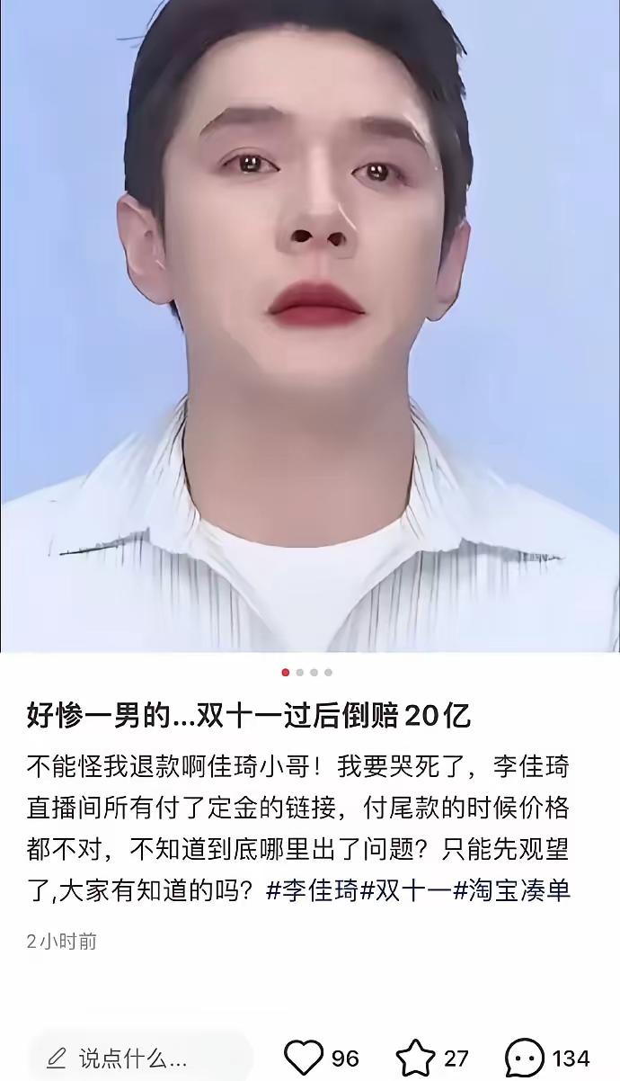 最近刷到好多网友在问:“李佳琦直播间到底亏了多少?” 原来今年双十一,平台优惠规则太绕,很多人在李佳琦直播间付完尾款后,才发现别家更便宜,干脆直接退款。结果一传十、十传百,退款量暴增,据说他团队这次真的亏惨了,有说法甚至说一天就亏了几千万! 想想也是,李佳琦从当年在小房间里一支口红一支口红试出来,一路干到“直播带货一哥”,风光无限。但这几年翻车也不少——“79块眉笔怎么这么贵?”、产品被质疑质量不行……口碑慢慢就有点崩了。 现在大家买东西越来越精打细算,加上平台玩法越来越复杂,很多人开始犹豫:还值得在李佳琦直播间下单吗?说实话,连我身边的朋友都开始比价了,不再无脑跟买。他的光环,好像真的没以前那么亮了。