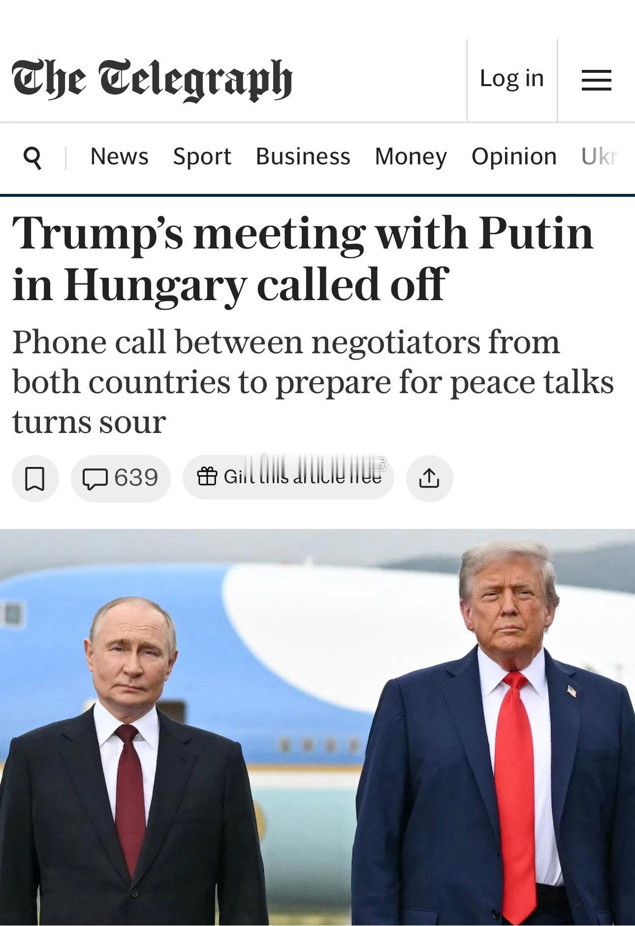 10月21日《每日电讯报》突发新闻:普京和特朗普将在匈牙利的会晤被取消。白宫官员表示,特朗普认为双方尚未准备好进行高层会谈,美俄两国对结束俄乌战争的预期存在分歧。美国国务卿卢比奥和俄罗斯外交部长拉夫罗夫之间的首次会谈是“富有成效的”,原定于本周举行的俄美外交高层会议已暂缓。 特朗普暗示将承诺反对台独