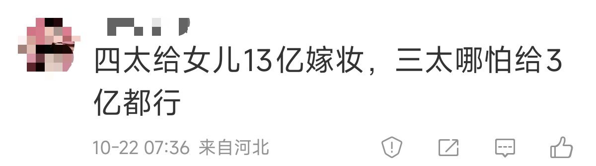 男宝妈。三太没给嫁妆吗?事实上,三太给了,何超莲婚礼上带的那一套超大钻石红宝石项链和手链就是三太给的,上亿港币。