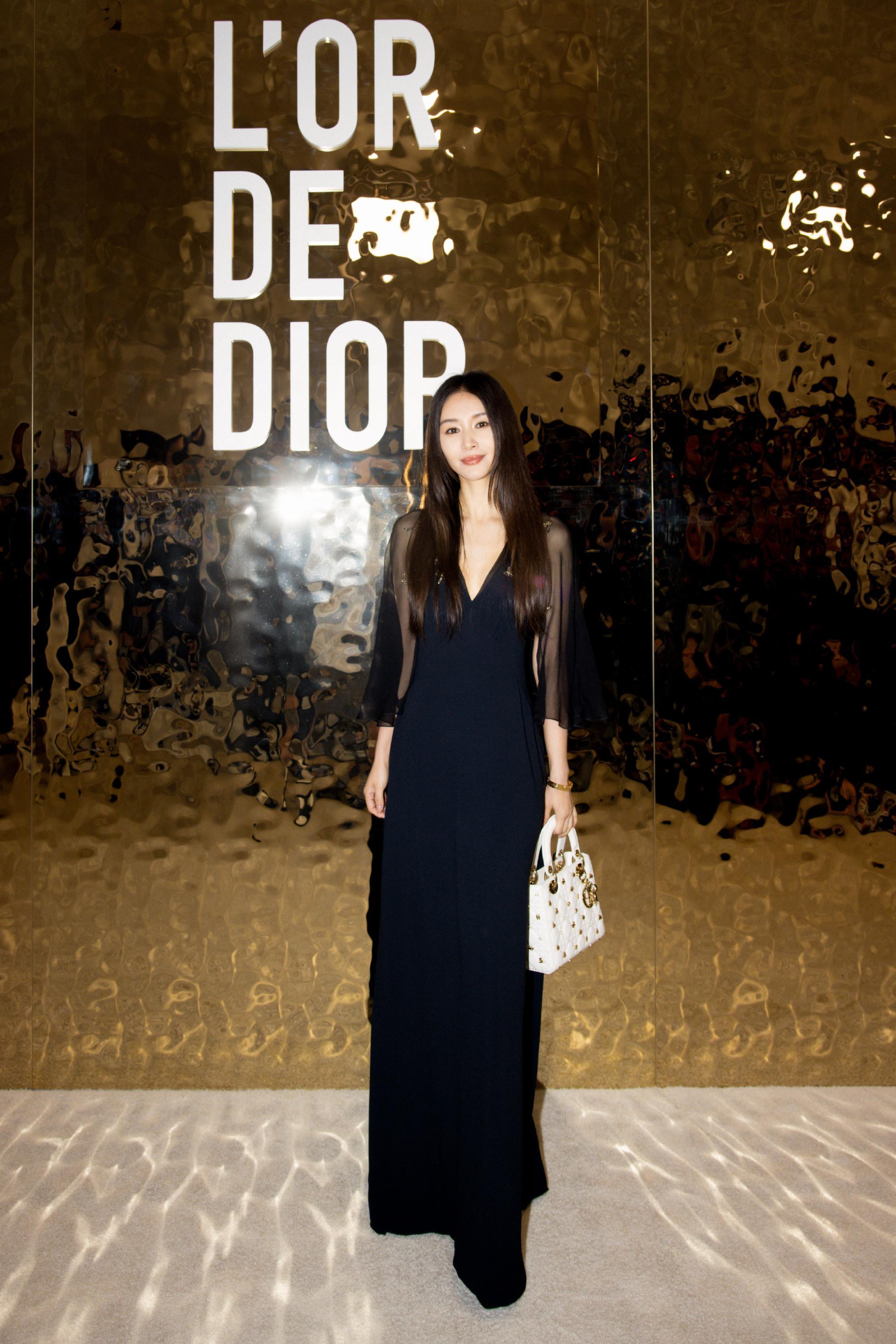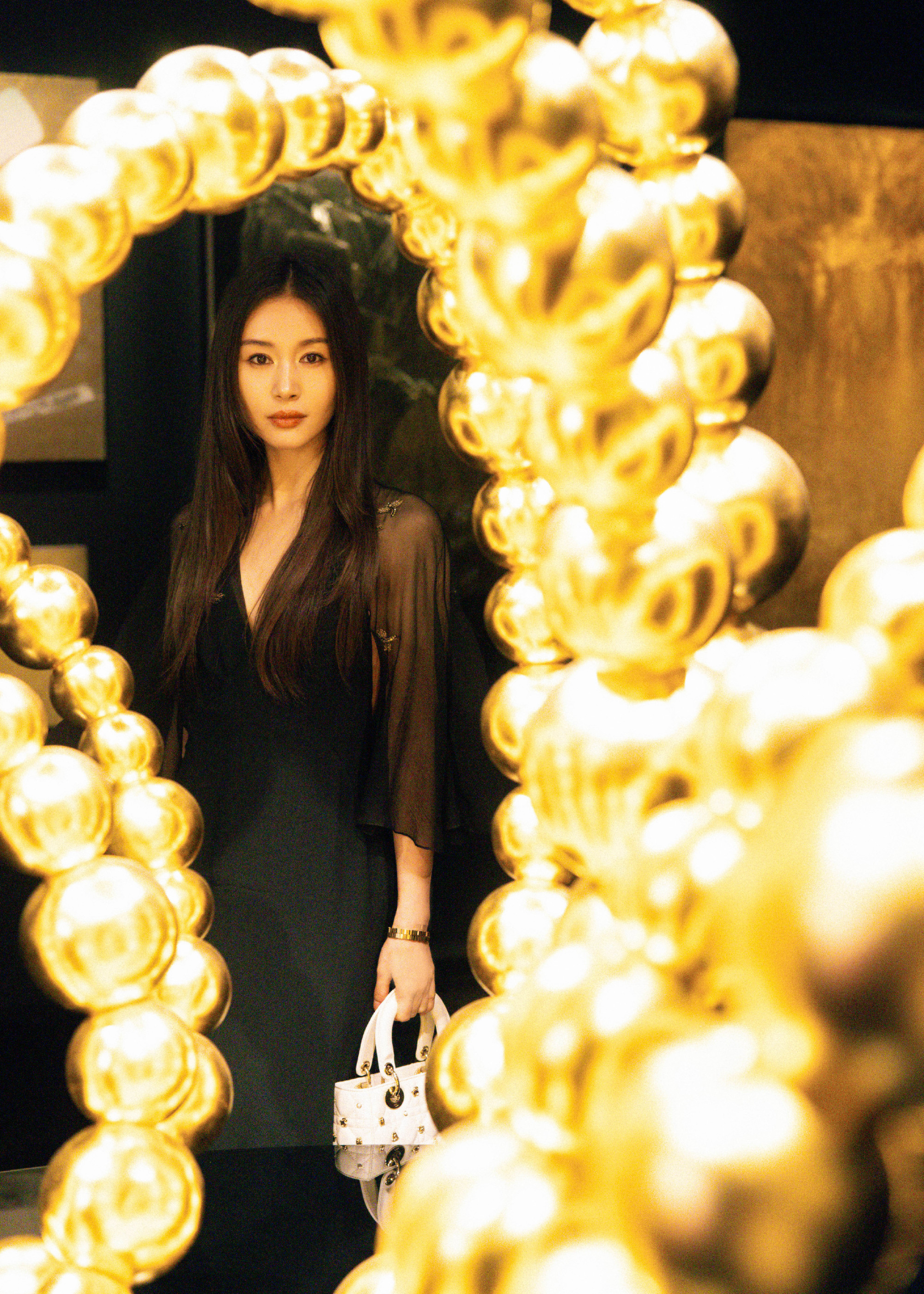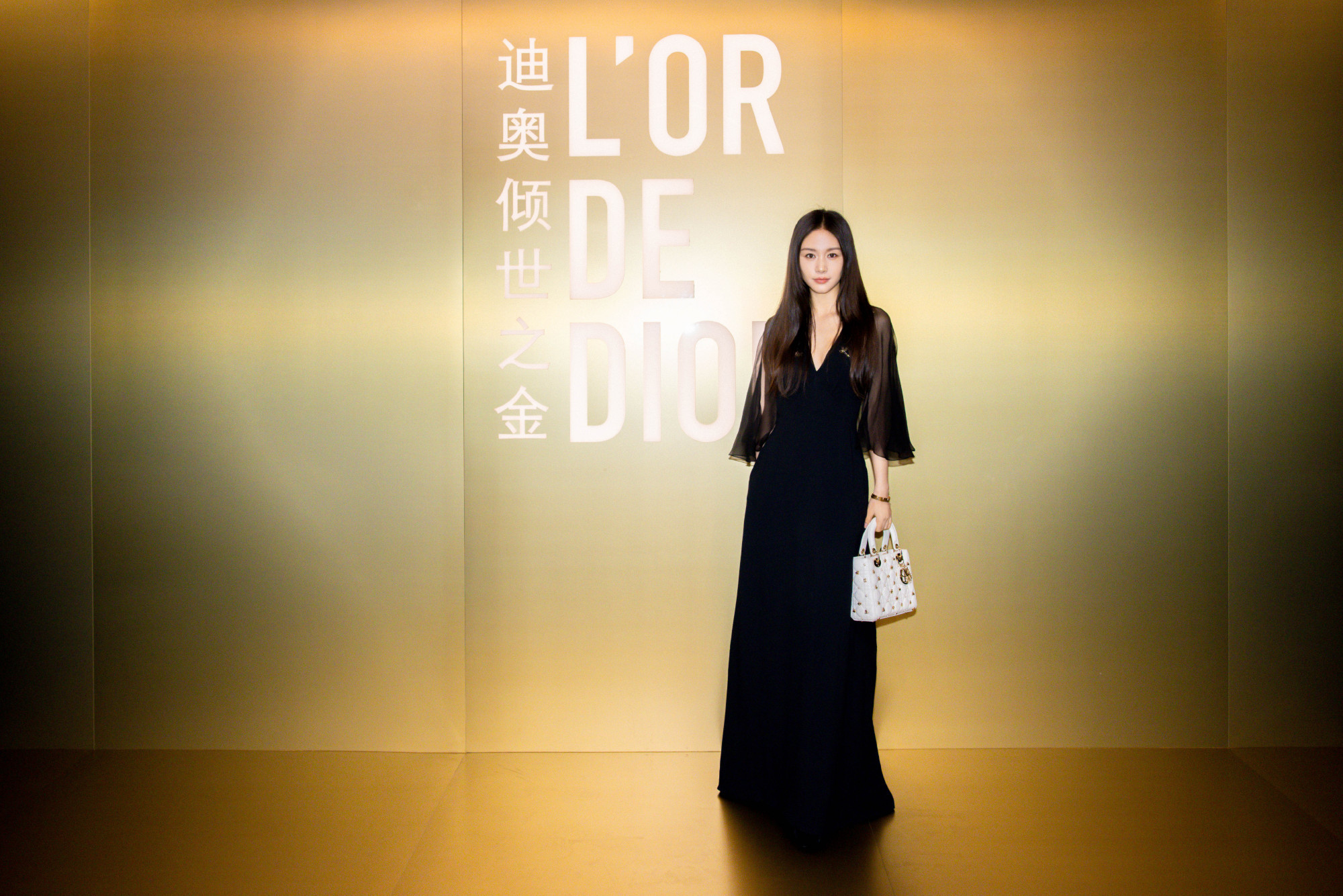 王子文露背薄纱裙,金色璀璨,大气怡人