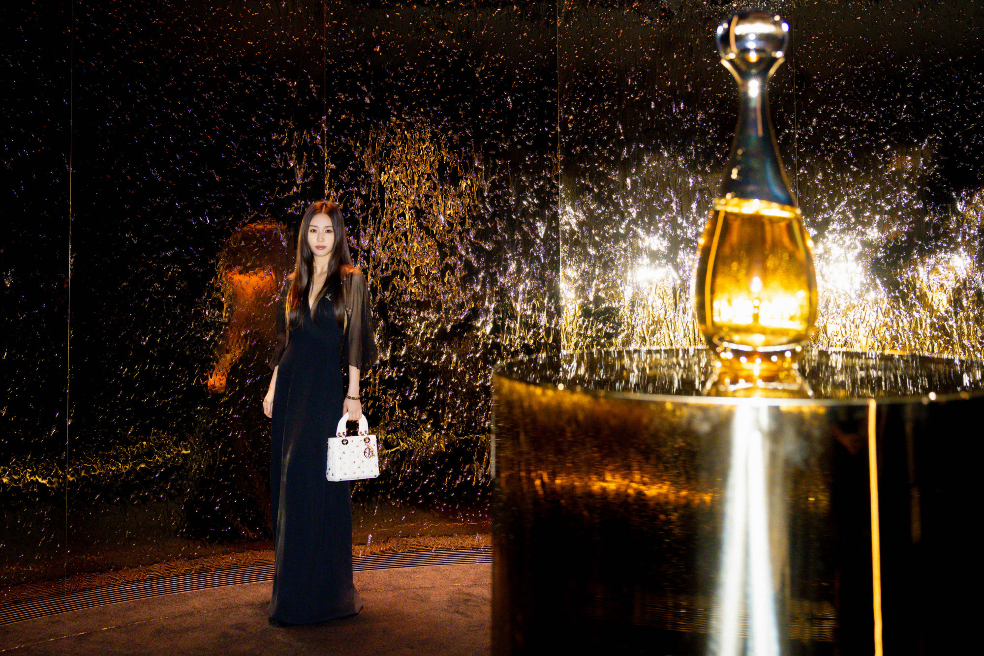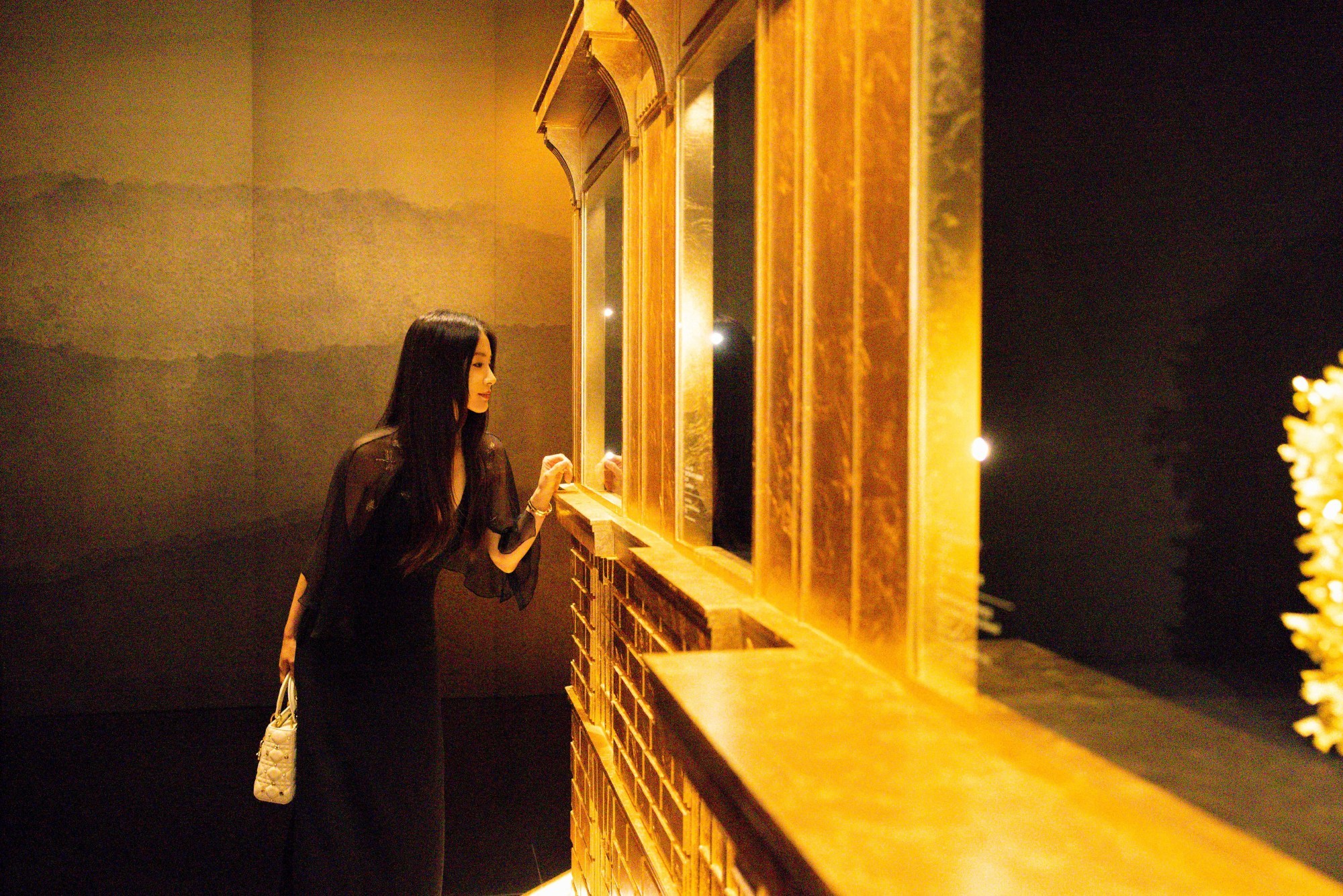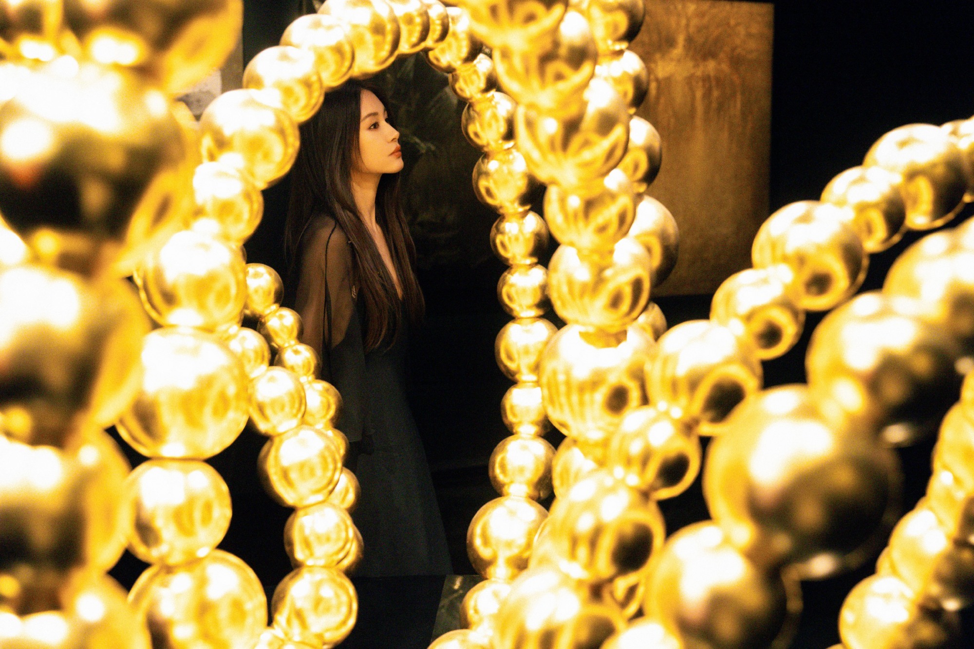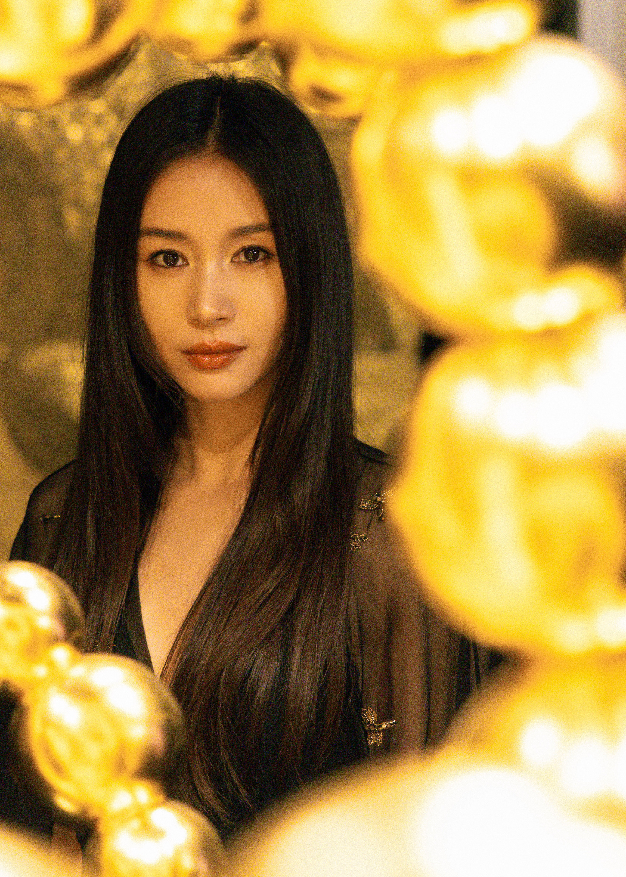 王子文露背薄纱裙,金色璀璨,大气怡人