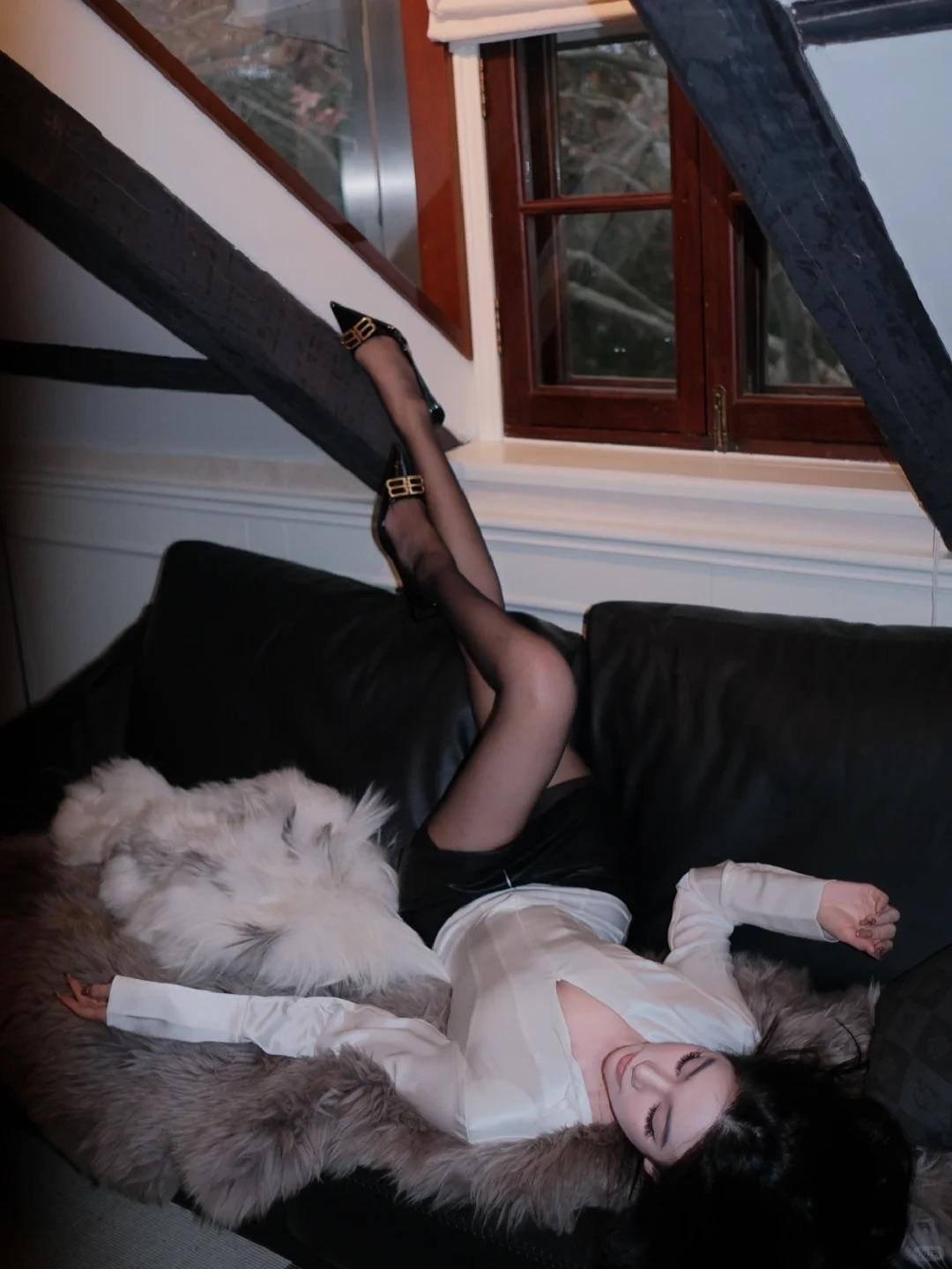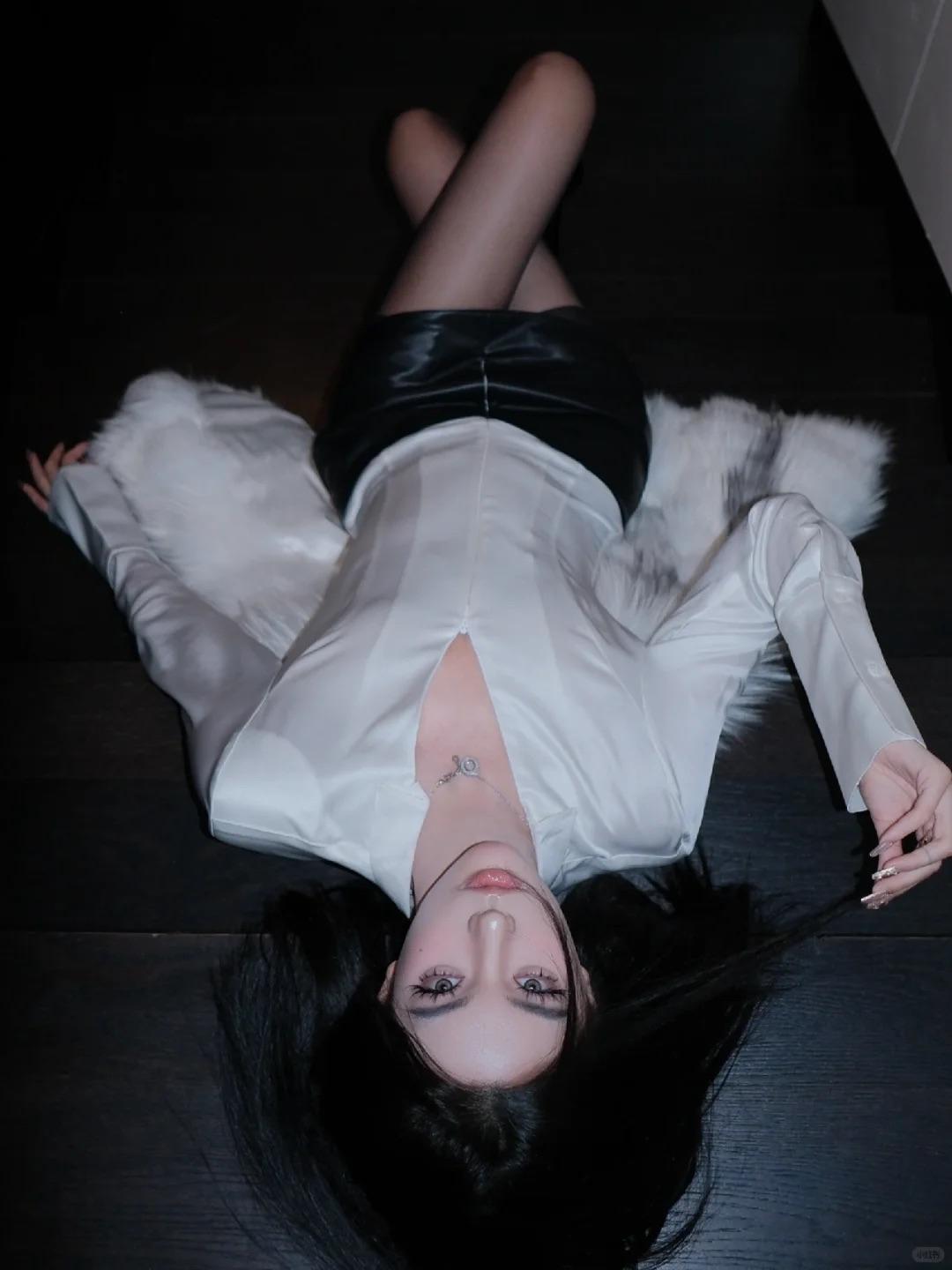 白衬衫+黑皮裙的御姐风写真|姐姐踩高跟鞋的瞬间,气场直接slay全场~