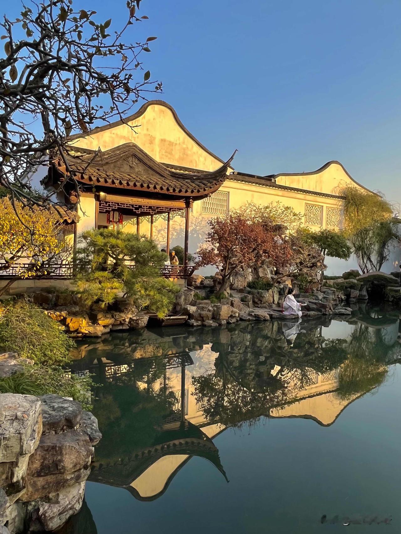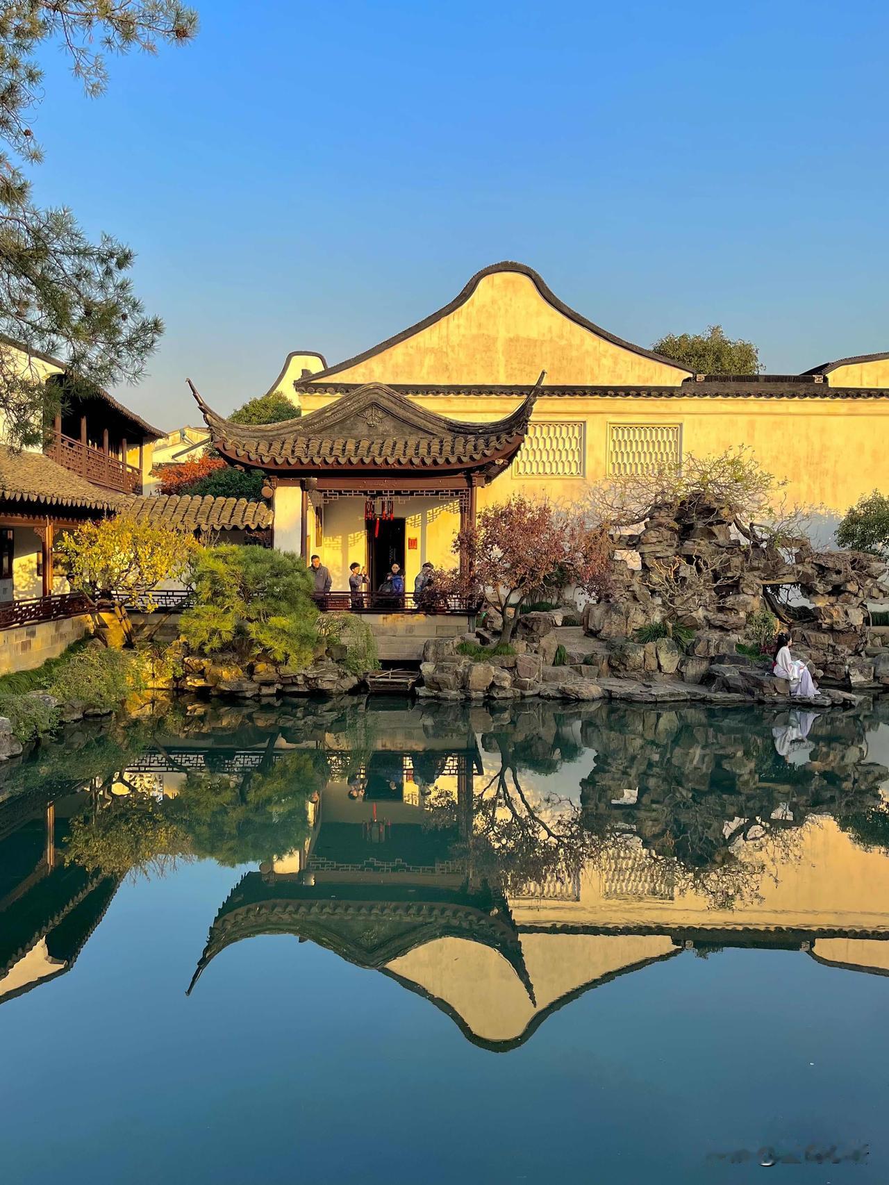 苏州网师园!这才是中式美学的天花板 到苏州特地跑了一趟, 就为看那面落日下的白墙。 夕阳的的光洒过来, 真的像“浮光跃金”的画。 白墙当纸,竹影做墨, 花窗漏出细碎金光,水榭映着晚霞。 老祖宗的审美太绝了! 没有花里胡哨的装饰, 却把浪漫刻进骨子里。 随便一拍都是古风大片, 手机内存都要拍满了。 这趟苏州行值爆了! 你们有没有为一处风景, 专门跑过一座城?