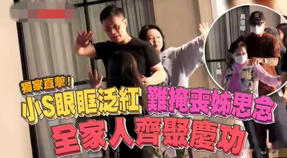 小S获奖后,就预告会全家人一起庆祝。果然,10月18日傍晚,小S和老公许雅均在寿喜餐厅宴请徐许两家人吃饭。出席的有许雅均母亲和姐姐,S妈和大姐一家,这一次具俊晔没有缺席,也来为小姨子庆祝了。 从照片来看,S妈状态似乎还不是很不好,一旁的具俊晔双手搭在丈母娘肩膀上贴心安抚,小S看上脸有些浮肿,眼睛泛红,貌似哭过。不过,还好有老公许多雅均细心呵护。一家人同框的画面很温馨,可惜缺了大S和玥儿姐弟。 不明白,大S离世后,S一家为何要疏远大S的两个孩子?不是更应该替大S照顾呵护她的孩子吗?这一家子的脑洞,跟正常人还真不太一样!