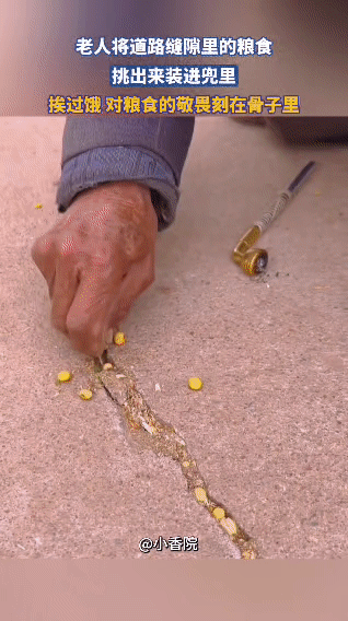 在一条乡间小路上,一位头发花白的老人正蹲在地上,专注地用手将道路缝隙里的粮食一点点挑出来。这些粮食或许是运输过程中洒落的,却被老人视若珍宝。他布满皱纹的手格外小心,把挑出的粮食捧在掌心,再仔细地装进红色的袋子里。 老人曾挨过饿,对粮食的敬畏早已刻在骨子里。在他看来,每一粒粮食都来之不易,哪怕是落在路缝里的,也不能浪费。他认真的模样,仿佛在完成一项神圣的使命,那是对粮食最虔诚的尊重,也是一段岁月留下的深刻印记。路边的老头 老一辈的思想观念能有多开放?