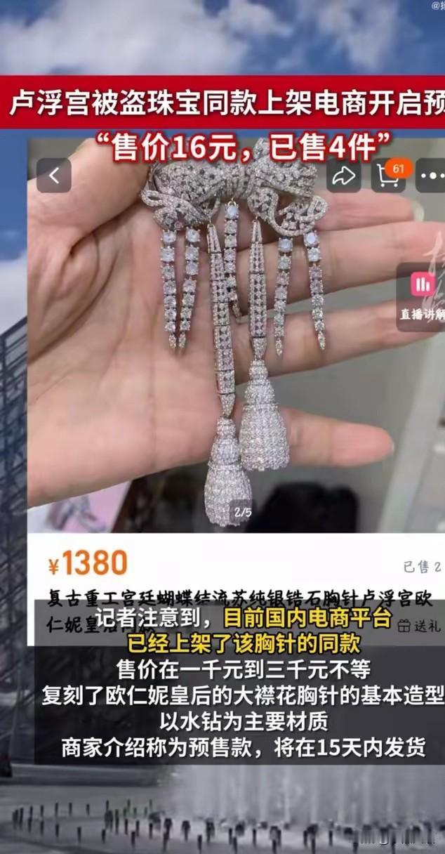 当卢浮宫那边还在抓小偷的时候! 咱们这边的电商主播都已经在喊“3、2、1上链接了”。 最近卢浮宫那边不是丢了几件宝物吗?那边还在抓小偷的时候,咱们义乌已经复刻了仿制品了,而且价格也很便宜。 当小偷看到“电商主播大喊不要999也不要99只要9.9上车的时候“,小偷都蒙了难道自己白忙活一场了吗?这玩意那么便宜吗?这就是义乌速度。