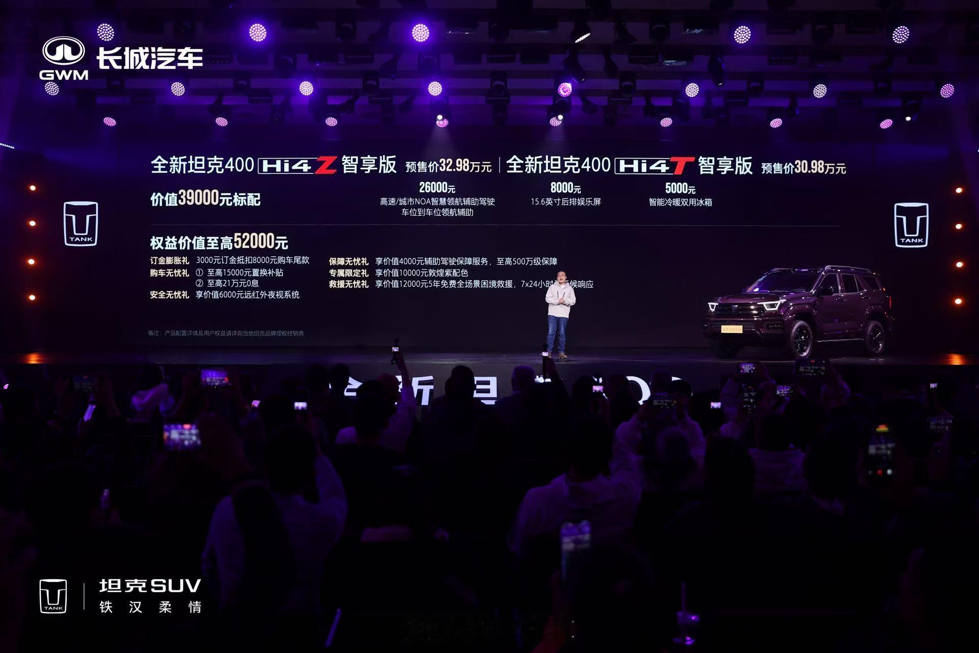 全新坦克 400 开启预售,30.98 万(Hi4-T 智享版)到 32.98 万(Hi4-Z 智享版),外观和内饰有大升级,冰箱和后排娱乐屏都是标配。带城市/高速 NOA 和车位到车位领航辅助驾驶。越野不在话下,城区代步也能开着舒服[666]