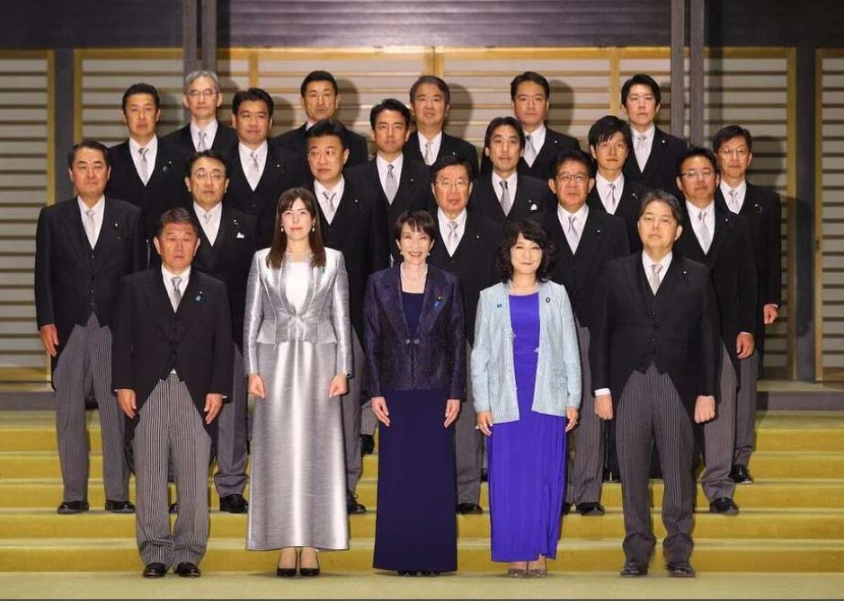 高市早苗内阁组的挺快,刚刚当上首相,内阁全体合影就出来了。 相比于石破茂内阁的合