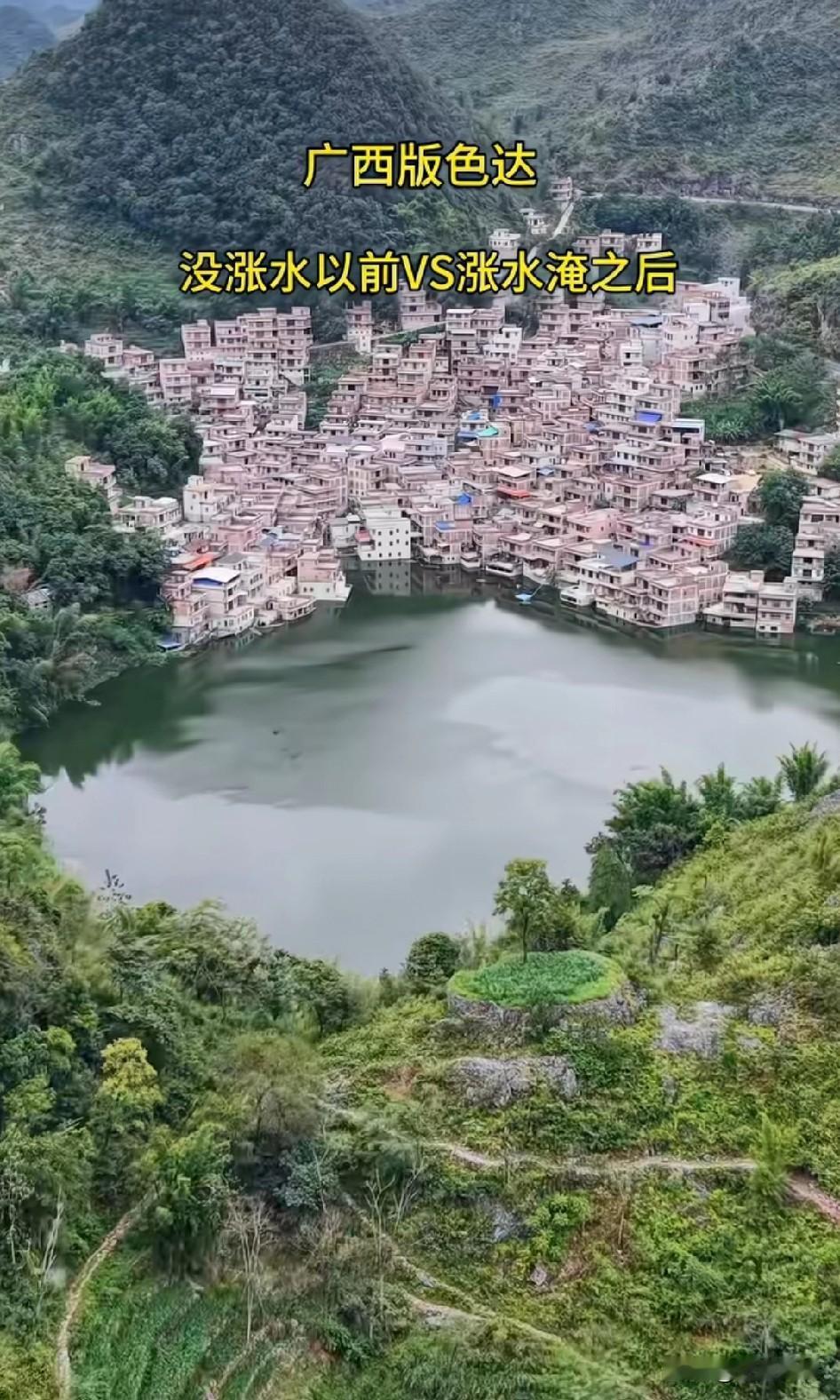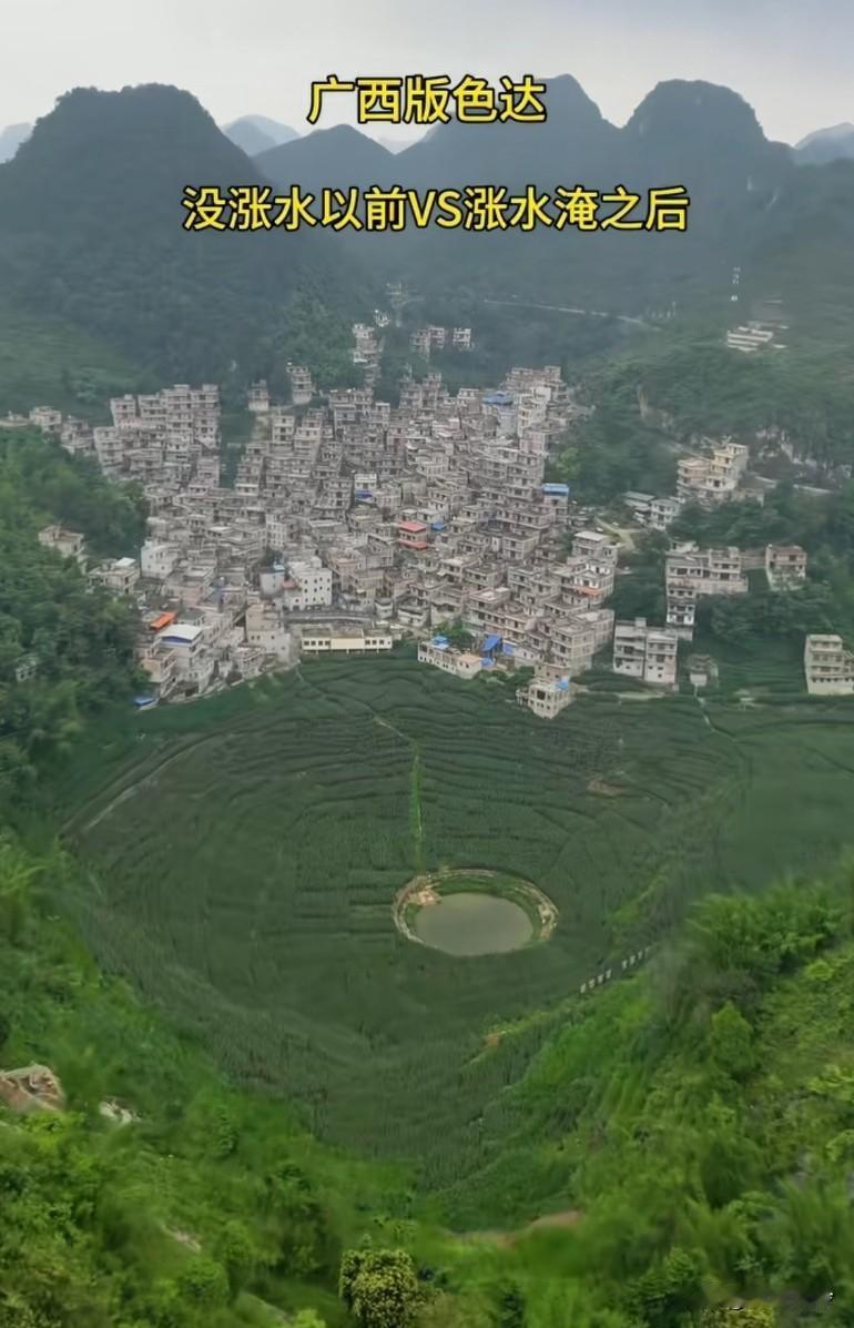 这么多的水根本排不出去,以后多养点鱼在里面!告诉李维刚,这有鱼,4万包给他 这地形 全国都少有,山不稀奇,这种像一个大碗的地形没怎么见过。重庆和四川不是老祖宗挖河道,也是一样,老祖宗是有远见的。看这种建筑就知道了,平时都有淹,只是没有那么大,最前面的几排应该是新建的,这个地方真的有一种天然湖泊的感觉。从这地势来看,这里以前应该就是湖,因为喀斯特地貌的原因,有可能水漏掉了