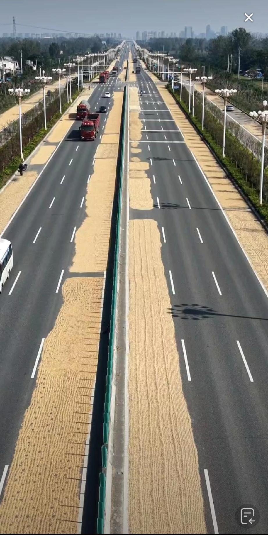这是在干嘛, 晒稻谷? 这是公路晒稻谷? 晒收谷子