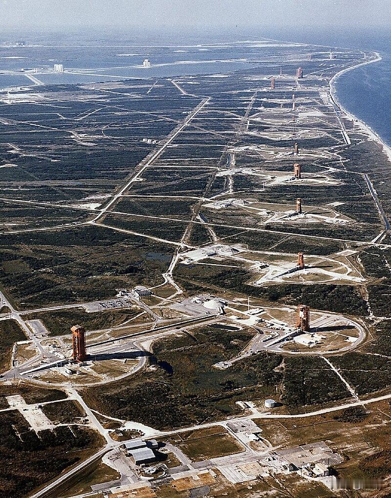 钢铁巨阵:卡纳维拉尔角的47座发射场,冷战航天野心的地表印记。 这张照片展现了1