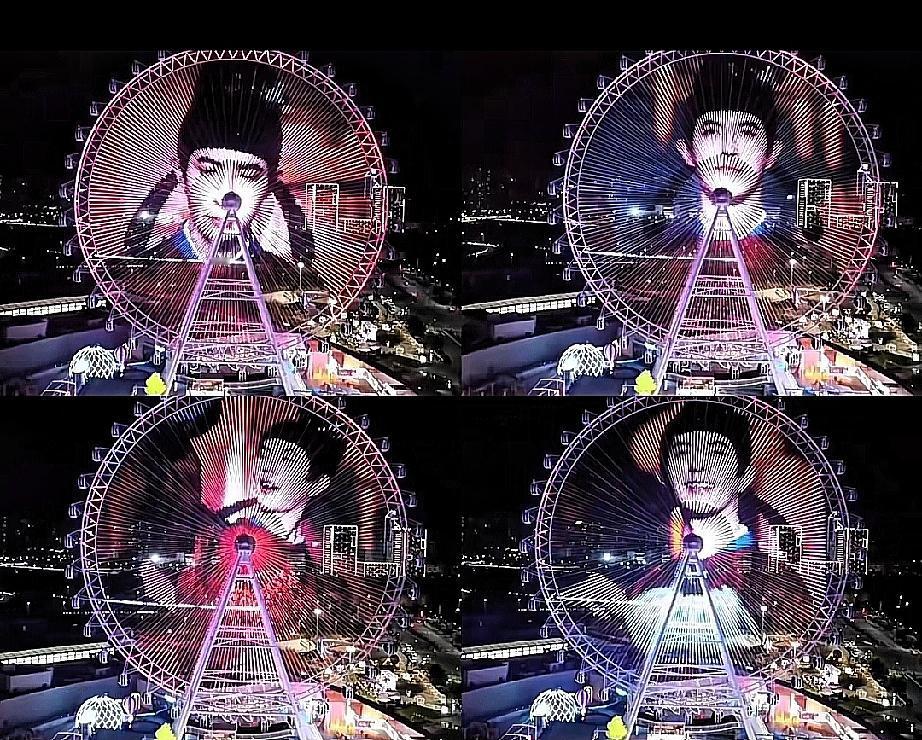继吾悦广场之后,兰州万达摩天轮也玩起了浪漫大秀。夜幕中,一袭红袍、头戴黑官帽的形