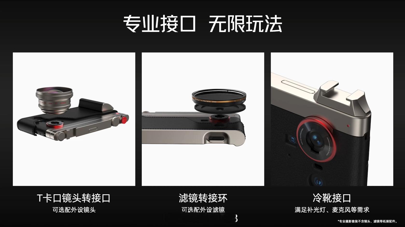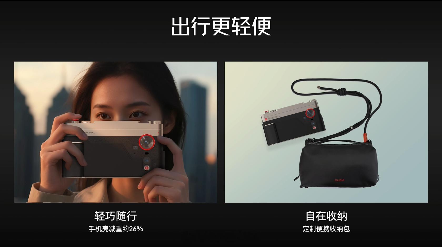努比亚 Z80 Ultra 专业摄影套装。科技纳米皮、钛色铝合金边框、头层牛皮真皮手柄,定制智能相机控制条,配备实体机械操作键、以及可自定义功能的拨杆和转盘。