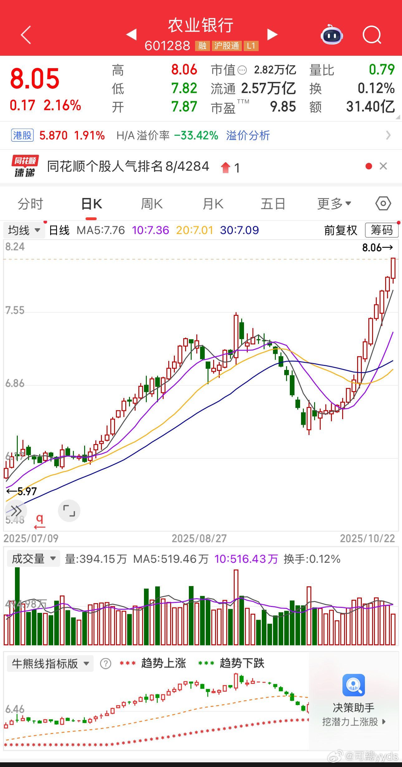 暴涨的农行和缩量的大盘明天也该选择方向了吧