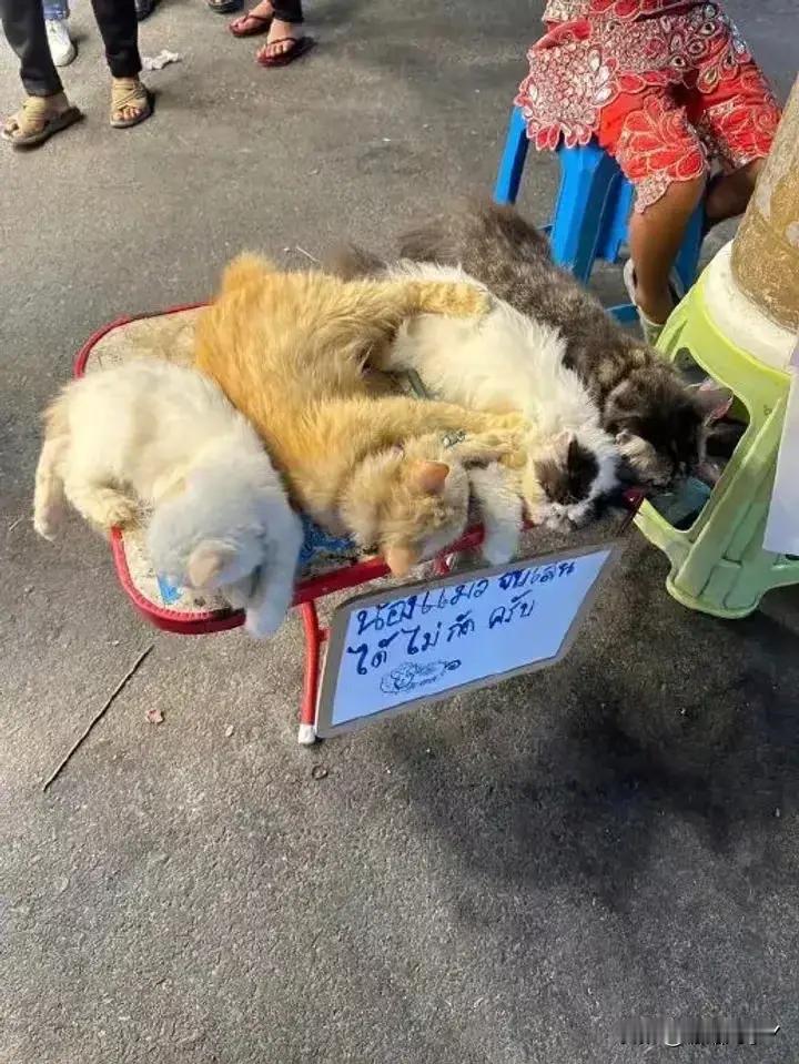 逛街时,看到一个桌子上躺了4只猫,不知道在干嘛!