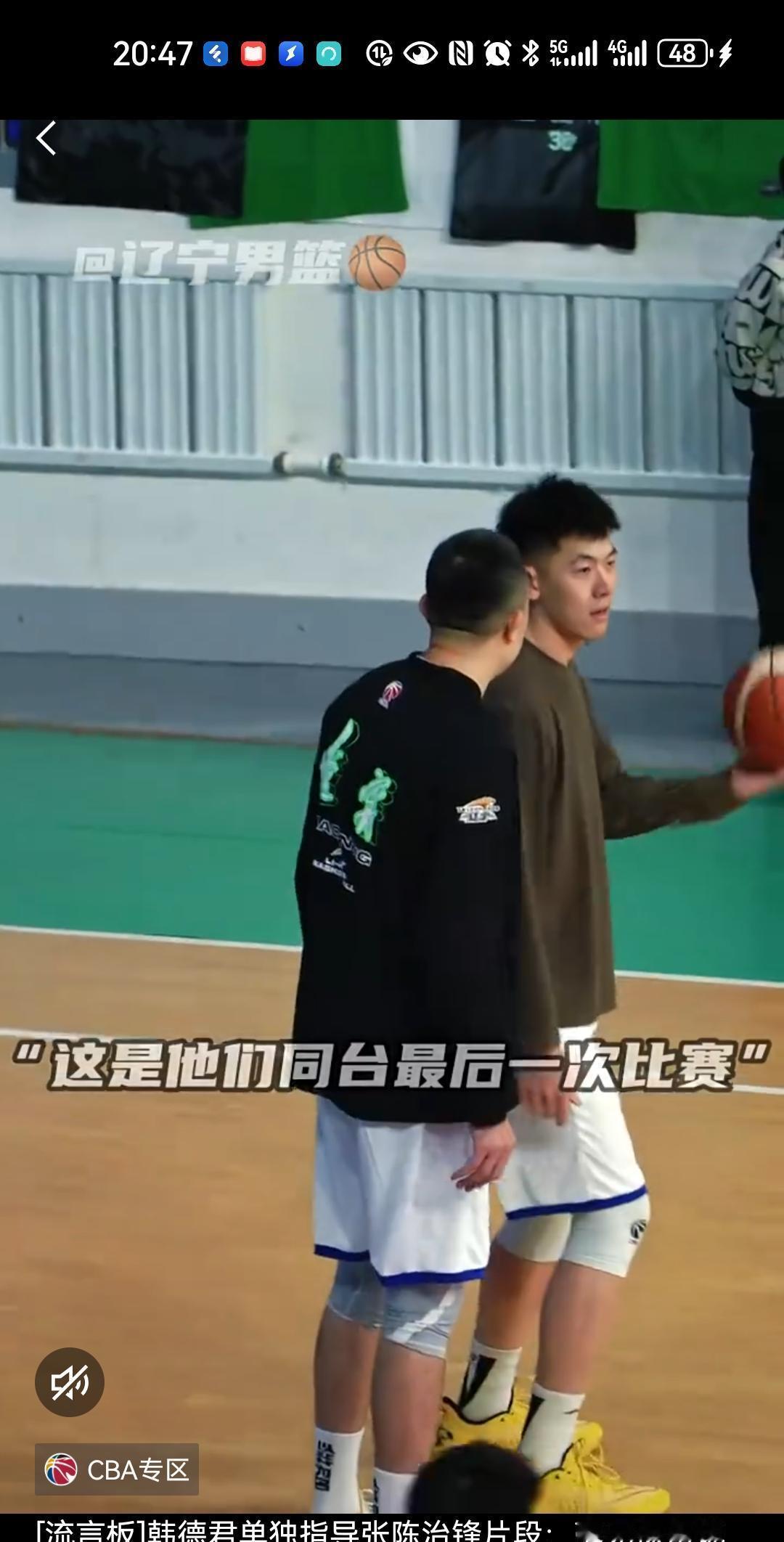 韩德君换了身份,没退役,球场里早来晚走,拉张陈治锋练低位背身。动作很缓,姿势卡得