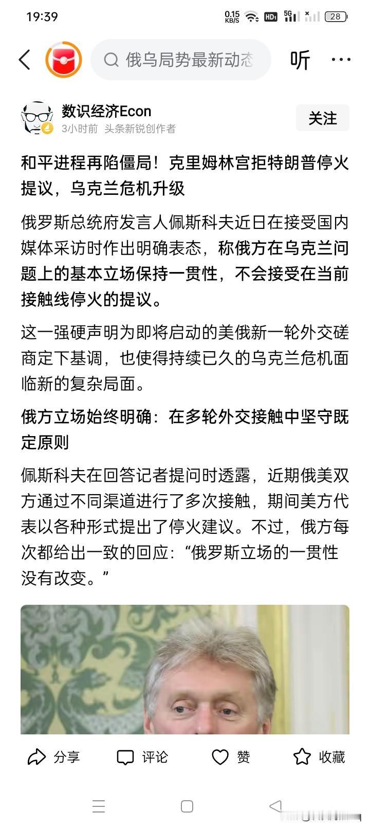 空中楼阁! 特朗普似乎已经是有点不管不顾其它的一切了,一心一意要的就是俄罗斯与乌克兰的战争停火、结束。但是,好像任何事情都需要条件一样,结束战争、实现和平,无疑也需要一定的条件。比如说俄罗斯对乌克兰采取的特别军事行动,他有条件按自己的心意对乌克兰采取特别军事行动,但没有条件按照自己的意愿结束特别军事行动。 乌克兰总统泽连斯基不出意料之外的宣称:他绝对不会同意俄罗斯提出的让乌克兰军队撤离顿涅茨克的停火条件。与此不谋而合,俄罗斯总统新闻发言人佩斯科夫也表示,俄罗斯的态度与以前一致,不会在现在的战火接触线停火。 这等于说,俄乌都没有在目前的情况下停止战争的愿望,那特朗普希望停火结束战争的愿望,也只能是空中楼阁,毫无实现的可能性。