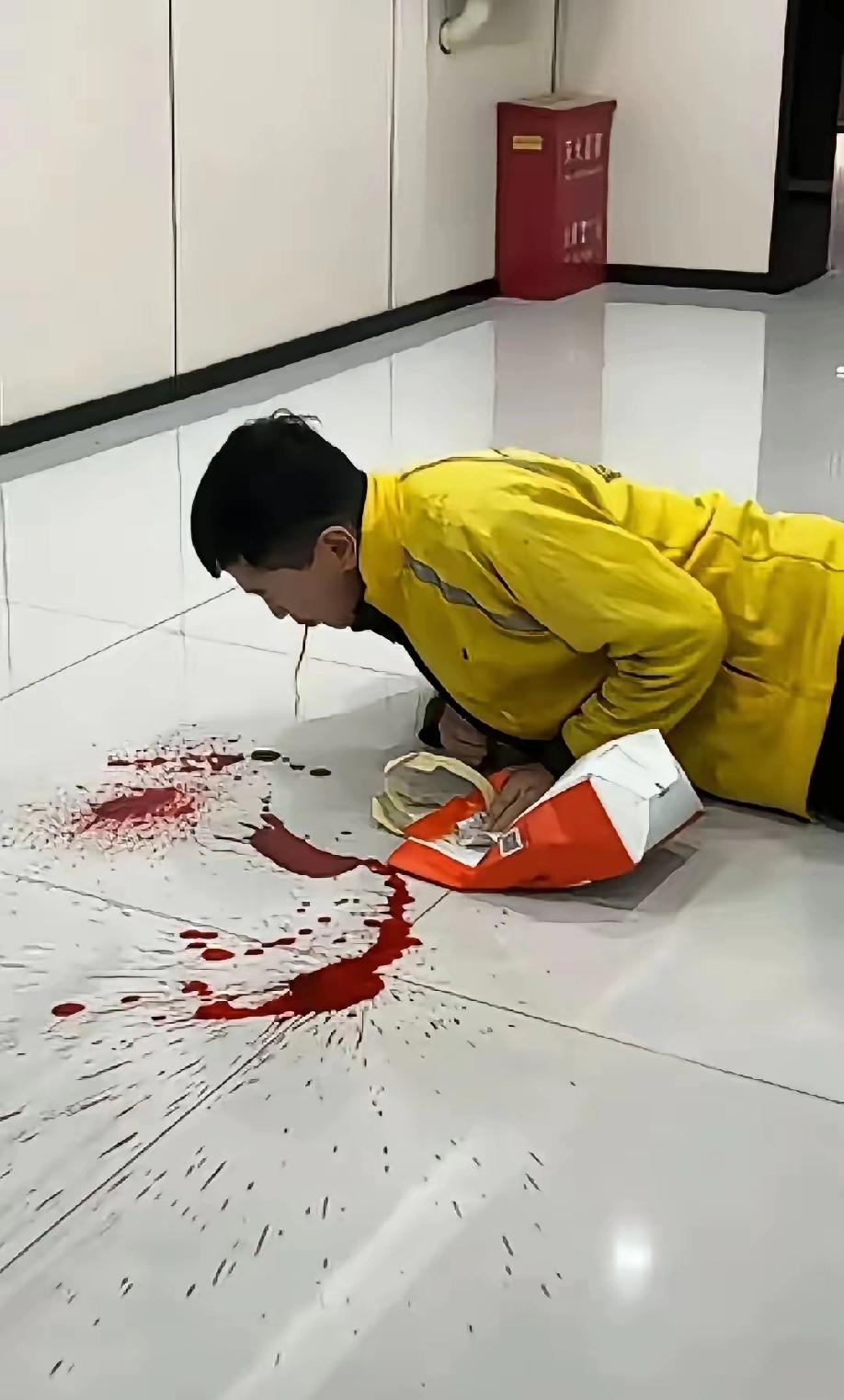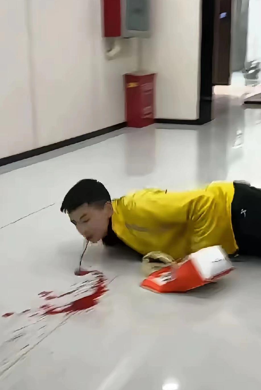 看到这一幕,我真的惊呆了,这是用生命在送外卖! 有网友拍到,在一个商场里,一个外卖员口吐鲜血,倒在地上。 后来听说,他为了生活,就算生病了也熬着,慢慢的把胃熬坏了,身体终于支持不住,吐血倒地。 希望这样的场景,以后不要再发生了。