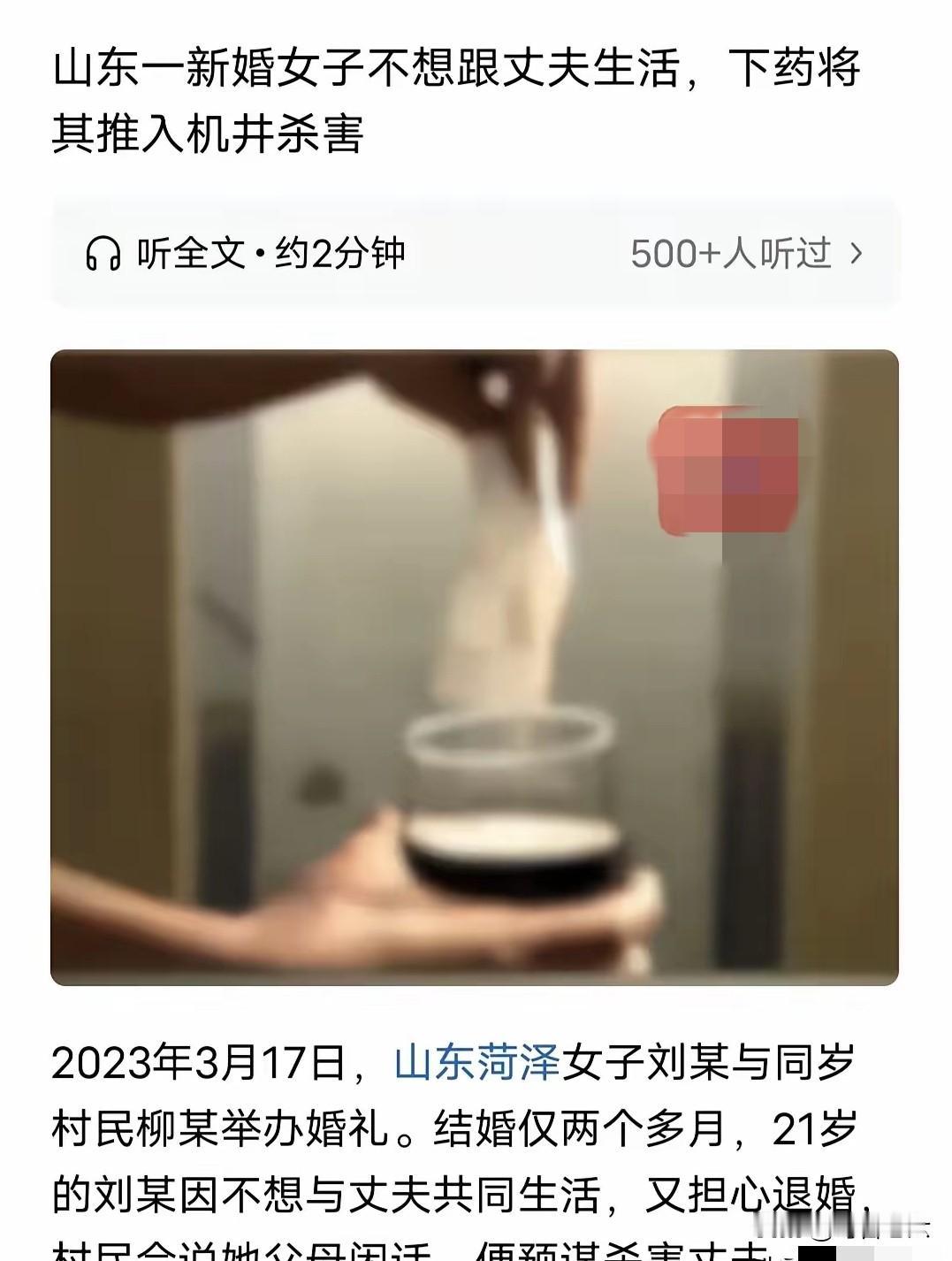 “比潘金莲还狠!”山东菏泽,21岁女子,新婚2个多月,她不想跟丈夫生活,又怕退婚父母被人说三道四,在丈夫喝酒后给他吃安眠药,连哄带骗让丈夫下机井捞鱼,不料,丈夫下井时坠入机井,4次求妻子找人救命,可女子开车往返多次,却没找人救他,之后,女子还将井盖盖上,丈夫最终因为缺氧窒息呼吸衰竭死亡,而法院判决让人拍手称快! 21岁啊,多好的年纪,婚姻才刚开始两个月,就把一条人命当儿戏。你说她图啥?不是被虐待到活不下去,不是日子过不下去没法沟通,就因为“怕父母被说三道四”——这心思得多自私? 怕别人嚼舌根,就把枕边人往死里逼?给她丈夫喂安眠药那会儿,就没想过这是条命?哄着人下井的时候,就没瞅见井边那湿滑的青苔? 丈夫在井底喊救命,四次啊,声儿都哑了吧?她开车来回转悠,油门踩得稳当,就是不停车找人,最后还把井盖盖上——这哪是盖井?是把良心全封在里头了。 最扎心的是,她干这些事的时候,怕是连慌都没怎么慌。新婚燕尔的丈夫,在她眼里成了甩不掉的麻烦,解决方式不是好好谈、不是求助长辈,是直接要人性命。 法庭上要是她敢说“我没想杀他”,谁信呐?那些操作环环相扣,分明是早就算计好的。好在法律没惯着她,这种草菅人命的,就该让她付出代价。 婚姻里哪有不磕磕绊绊的?怕被议论就不敢离婚,这事儿本身就透着糊涂。可糊涂不该变成狠毒,夫妻一场,再怎么着也该留口活气儿。现在人没了,她就算判了刑,能换回良心安宁吗? 各位读者你们怎么看?欢迎在评论区讨论。