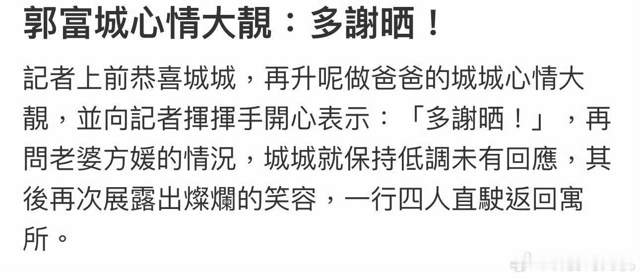 郭富城方媛三胎出生真快啊 !郭富城也发了小女儿正脸照