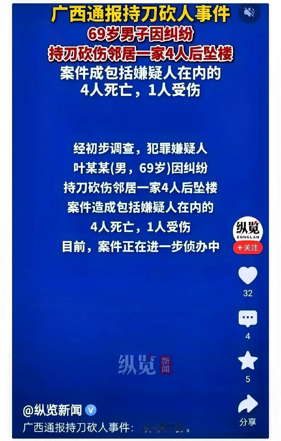 非常痛心的新闻。冲动毁掉了两个家庭。 处理邻里关系的五个经验法则。 近几日发生一起因邻里纠纷引发的杀人案件,死者是个老实人,杀人者是个疯子,具体纠纷细节不详,但这类因小区邻里关系引发的悲剧,近几年屡见不鲜。 处理邻里关系或许可以借鉴以下五个经验法则:1. 心态平和。 最忌被他人影响情绪,影响心态。 2. 遇事留痕。 自己处理不了的事,最好带上第三方一起参与,事后留存记录,以备不时之需。 3. 长期交锋。 不要指望一次性把问题解决,要有长期斗争的准备。 4. 不要碰底线。 如果碰到不讲理的邻居,记住底线法则,不要以身试法,更不要做出极端的事情来。 5. 提高警惕。 家庭发生火灾、入室盗窃、邻里纠纷等各种突发事件,都要有心理准备和应对预案,提高安全意识和防范意识。 麻烦看官老爷们右上角点击一下“关注”,既方便您进行讨论和分享,又能给您带来不一样的参与感,感谢您的支持!