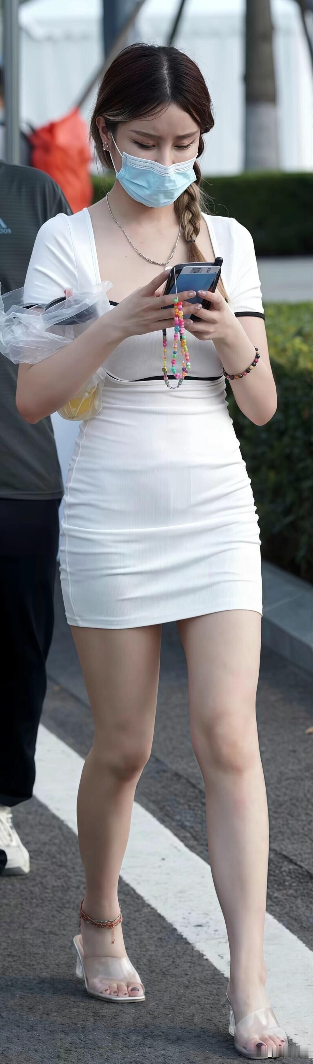 这位穿白色连衣裙的姑娘,搭配简单,看着很清爽。这样的穿搭更显青春靓丽。