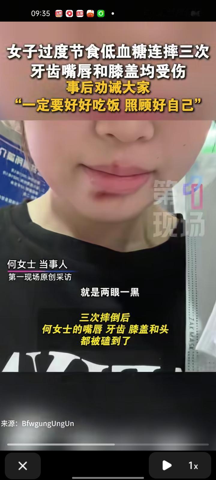 10月22日,广东东莞。女子过度节食患低血糖连摔三次,撞伤下巴后倒地,牙齿、嘴唇
