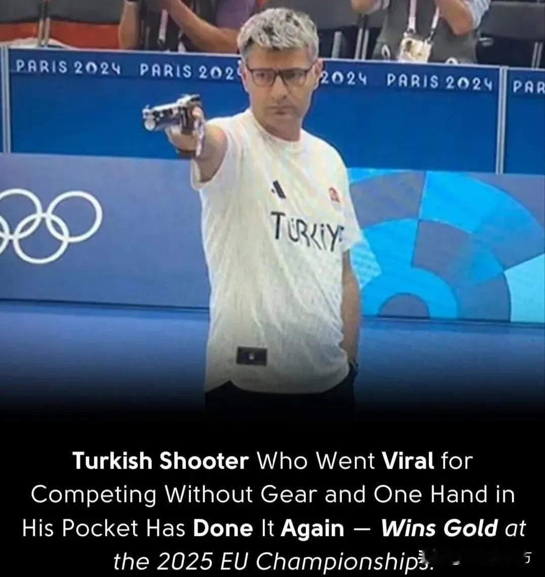 在伊斯坦布尔举行的欧洲气手枪锦标赛,习惯单手插兜参赛的52岁土耳其射击运动员尤瑟夫·迪克奇斩获三枚金牌、一枚银牌和一枚铜牌,稳居个人奖牌榜榜首。去年的巴黎奥运会,他收获了一枚银牌。