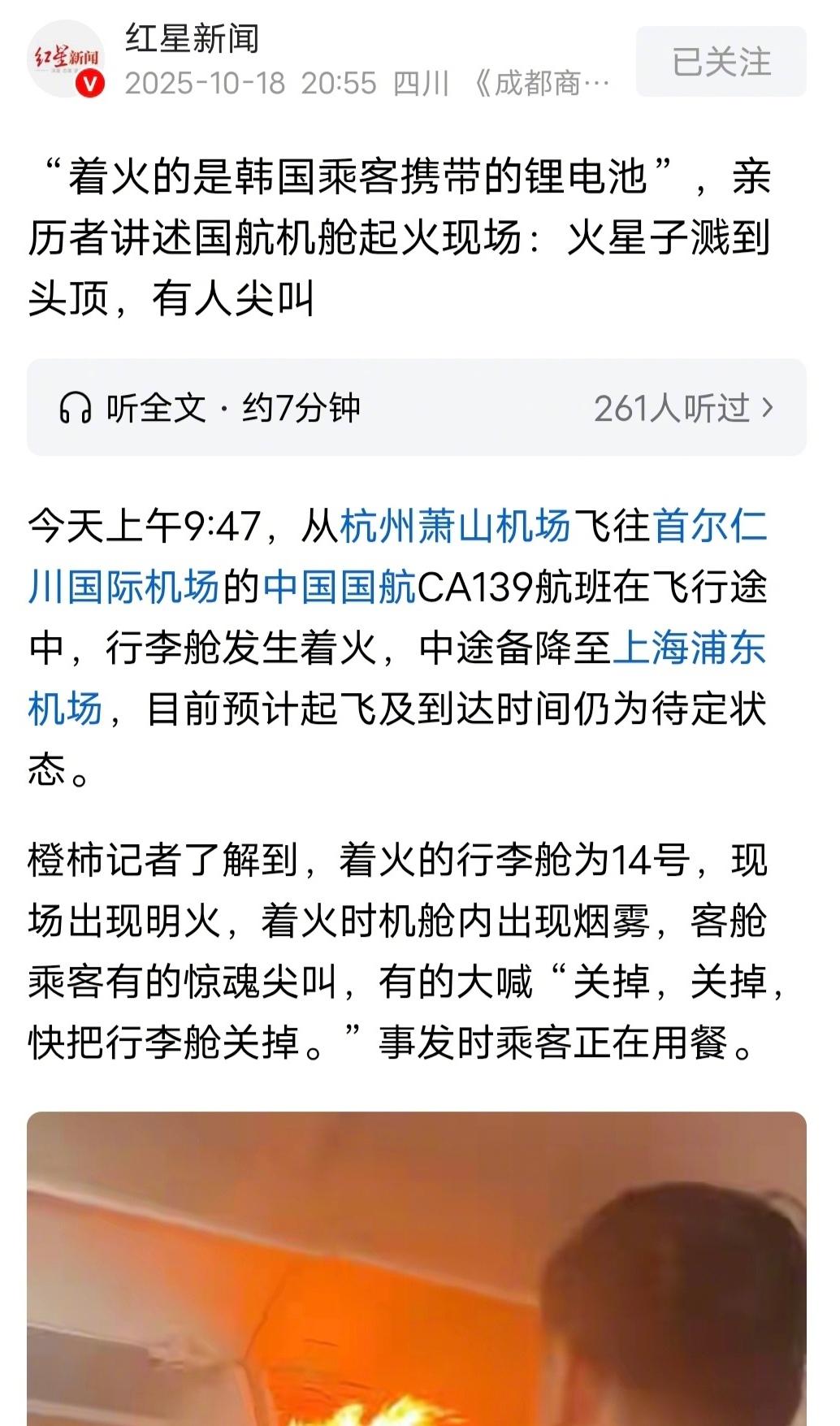 韩国人的锂电池是怎么带上飞机的?从杭州萧山机场飞往韩国首尔仁川国际机场的中国国航