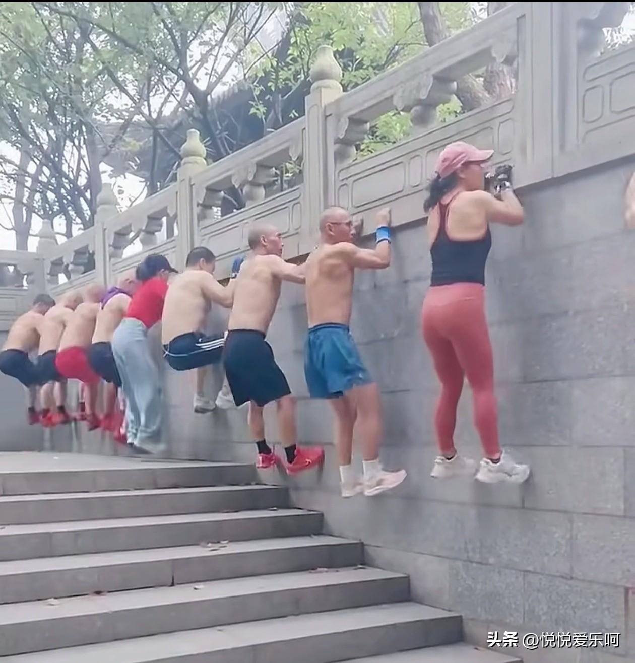 广场舞、暴走团,现在又时兴这个扒墙运动了?这得几年才能练成这样的功夫,这三位扒在