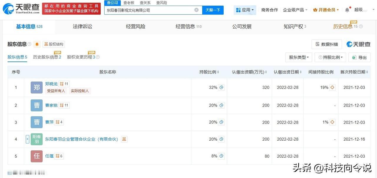 【揭秘红舞鞋出品公司 揭秘红舞鞋出品方春羽影视】红舞鞋致歉声明 10月23日凌晨,《红舞鞋》剧组官微发布致歉声明,称因剧组司机疏忽失误,导致校园内流浪猫小橘子不幸离世。剧组全体人员对此深感痛心与愧疚,向全校师生及所有关心此事的朋友致以最诚挚的歉意。 天眼查App显示,《红舞鞋》出品方东阳春羽影视文化有限公司成立于2020年1月,法定代表人为郑晓龙,注册资本1000万人民币,经营范围包括制作、复制、发行电视剧等。股东信息显示,该公司由郑晓龙、曹家铭、曹萍等共同持股。对外投资信息显示,该公司全资持股1家北京春羽工坊影视文化有限公司。 天眼查信息: