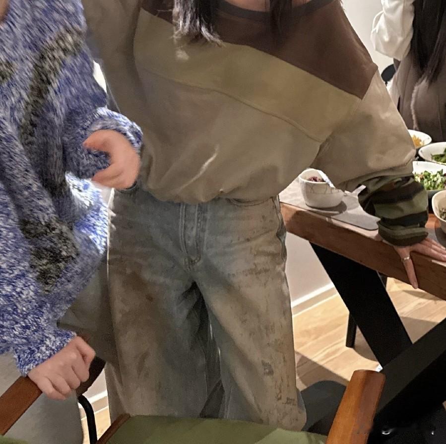 李斯丹妮、王霏霏、刘芸、张雪迎姐妹几个聚餐,刘芸的牛仔裤太抢镜,裤子实在是太脏太埋汰了,实在欣赏不来这种脏脏裤。
