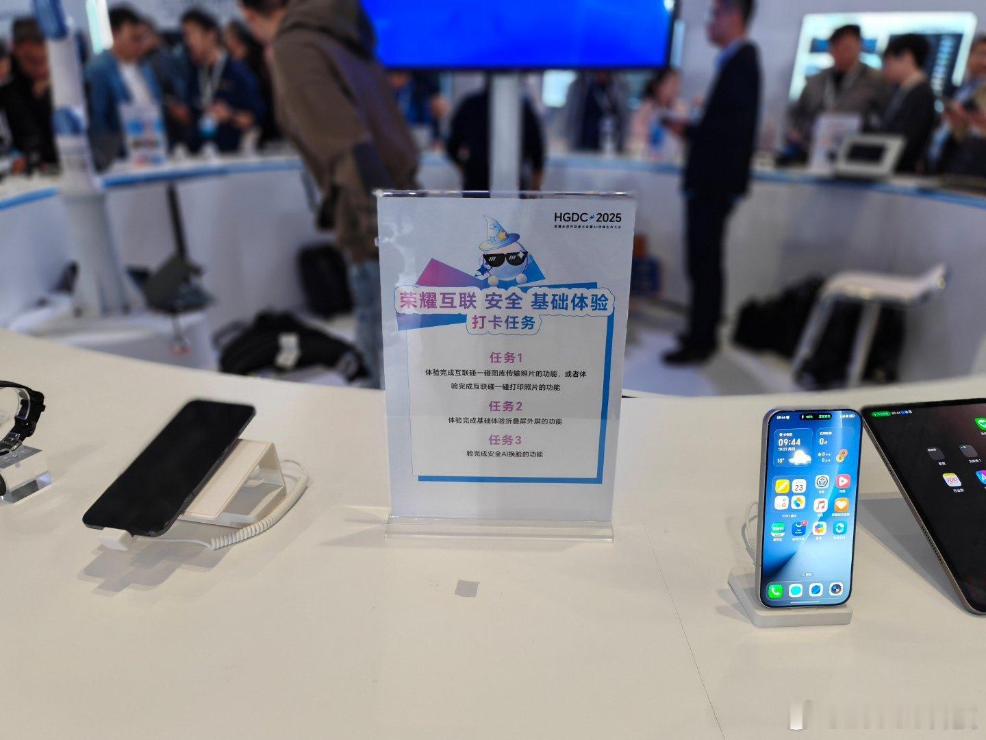 今天来荣耀开发者大会 ,感受荣耀AI生态 ,好多场景很有意思,我特别关注的是安全方面的生态,刚刚好也集卡了!打卡打卡!