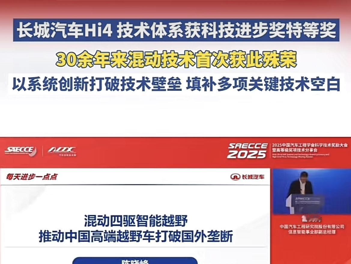 谁能料到长城汽车竟有今天! 长城汽车的魏建军时常现身互联网,与粉丝积极互动,被赞誉为“不务正业”却也是最亲和的车企掌门人。 谁能想象长城汽车能走到如今这一步! 近日,长城汽车凭借《混动四驱智能越野系列乘用车关键技术与应用》项目,荣膺“科技进步奖”特等奖。 该奖项设立三十余年来,首次将最高荣誉颁给混动技术领域。 长城的Hi4混动专为越野打造,这将成为长城越野的一道坚实的壁垒。 中国越野的江山牢不牢固,看长城!
