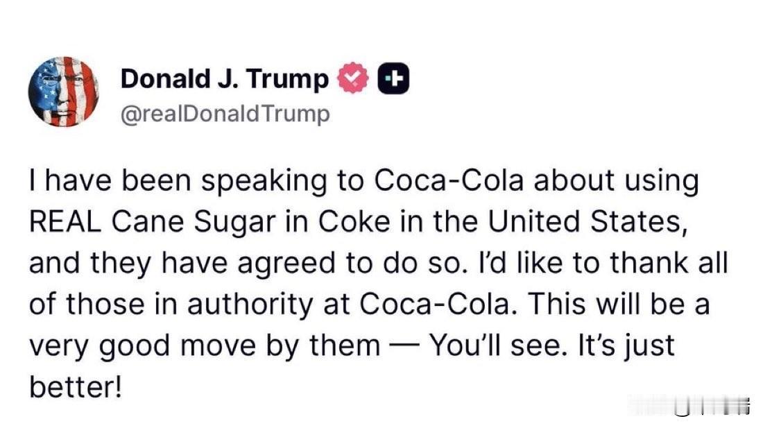 在特朗普的推动下,可口可乐公司计划将美国市场的可乐改为用蔗糖生产。然而,公司很快面临一个现实问题:美国本土的蔗糖供应和生产能力无法满足大规模推广的需求。 可口可乐首席财务官约翰·墨菲向彭博社表示:“这将是一项逐步推进的计划,美国的蔗糖供应有限。”问题不仅在物流环节,更涉及经济成本。替换甜味剂意味着工厂必须改造生产线、重新谈判供应商合同,并可能推高售价。 彭博社指出,美国糖市受到配额和关税严格控制,国内生产商无法迅速扩大供应来满足可口可乐的需求。长期以来,美国市场的可乐主要使用高果糖玉米糖浆;改用蔗糖不仅需要重新调整供应链,还必须应对原料短缺。分析师警告,这一转变可能耗资超过 10亿美元,影响玉米种植户,同时需要增加糖的进口量。 这项举措与特朗普提出的“让美国再次健康”理念呼应,但对可口可乐而言,这不仅仅是一句政治口号,更是一场复杂的物流与供应链挑战。 玉米精炼协会(Corn Refiners Association)批评了这项提议,警告称从高果糖玉米糖浆转向甘蔗糖将导致数千个美国农业和食品制造工作岗位流失,并减少农场收入。 可口可乐公司在美国销售的产品主要使用高果糖玉米糖浆,而在墨西哥等其他国家则使用甘蔗糖。美国市场上的“墨西哥可乐”也因其使用甘蔗糖并采用玻璃瓶包装而受到追捧。
