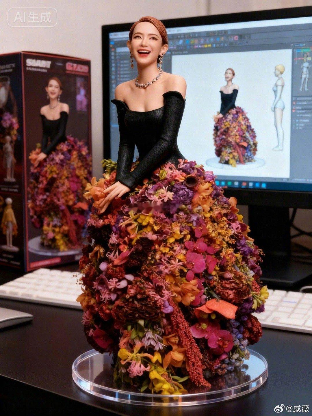戚薇VOGUE盛典造型由AI打造,科技与时尚的融合,百花齐放,明艳大气!