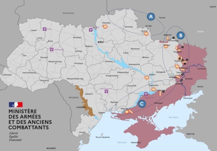 法国媒体刊载截止到10月22日的战线! 大家可以看地图的右下角,还是在乌东四州,来来回回的不停的打。而且还主要集中在乌东四州东北部的顿巴斯地区,还在做强力的争夺。小泽去懂王那边访问,而懂王要求小泽把顿巴斯地区,都划给大鹅,这样就可以结束战争了。 但是小泽坚决表示反对,土地可以在战争中失去,但不能在谈判桌上失去,守住了底线。也许若干年以后,小泽可以被称为不称职的总统,但不可以被称为割地的总统。能力不够那也没办法,但是守住了底线,坚决不肯割地,那就不会最终被清算,也算是乌克兰历史上的人物,因为没有主动割地。 纵观世界历史,主动割地求和的皇帝和各种人物,最终不管如何,在历史上评价都不会高。只要主动割地,将来必被清算,这个是必然的。所以小泽为了自己的未来,也以后的名声和地位,也不可能主动割地。 俄乌冲突继续打,在战场上丢失的土地,是军队能力不够,如果让小泽自己把土地割出去,那面临的山呼海啸的反对。这样的割地行为,会让小泽晚节不保,所以小泽坚决不肯主动割让土地。乌东四州现在就是这么个情况,再打也就这样了,大规模的战斗不会有,来回的对峙就好了。