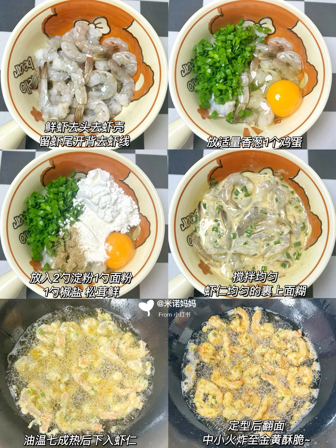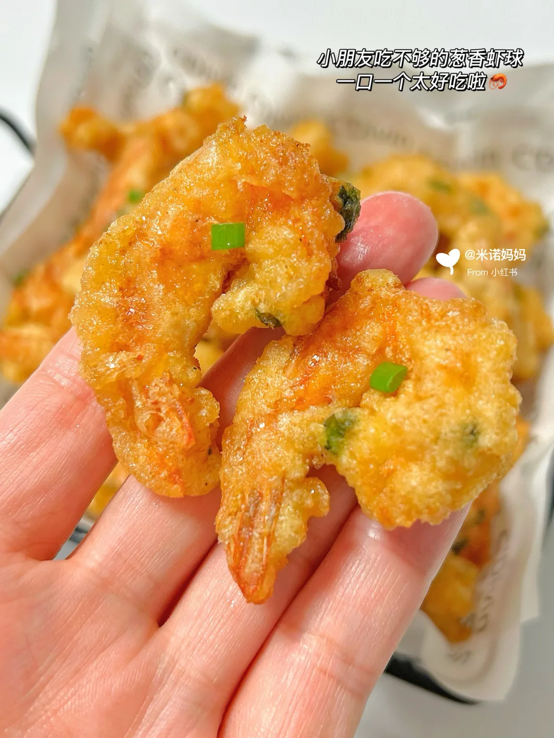 Hi 大家好呀❤️ 孩子每周点名要做的葱香虾球🦐来啦~ 外酥里嫩,放凉了也不会软,可好吃啦!小朋友一口一个,一盆吃不够~每次做这个,还没上桌就吃完啦,大家一定要去试试,香迷糊啦[举手R] - 🌈准备食材 鲜虾🦐 | 🥚蛋1个 | 玉米淀粉2勺 | 面粉1勺 | 香葱适量 👩🏻🍳具体教程请看图文哦~ ✔️虾仁处理干净后可用柠檬或姜去腥~ ✔️淀粉 面粉量可根据虾仁量自行增减~ ✔️中小火慢炸,炸至金黄即可~ - 快一个get起来吧~小朋友小朋友都敲喜欢[拥抱R]