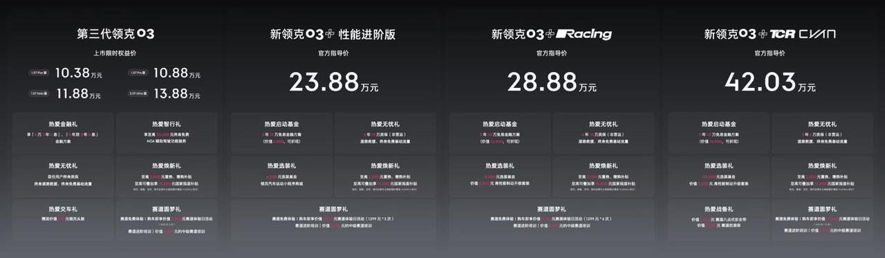 领克仍然坚持着初心!领克03全系列再进化! 对如今新能源遍地的车市来说很难得 2.0T领克03已经来到13.88万,搭8AT变速箱 领克03+直接来到双增压,马力超过300ps 同时有浩瀚智驾加入,这次小蓝灯也出现了 现在买车还带赛车课程了 吉利对赛车运动真的很坚持了【来自懂车帝车友圈】