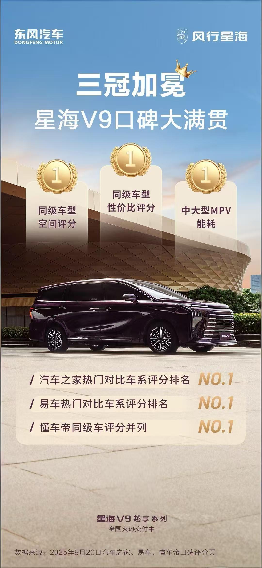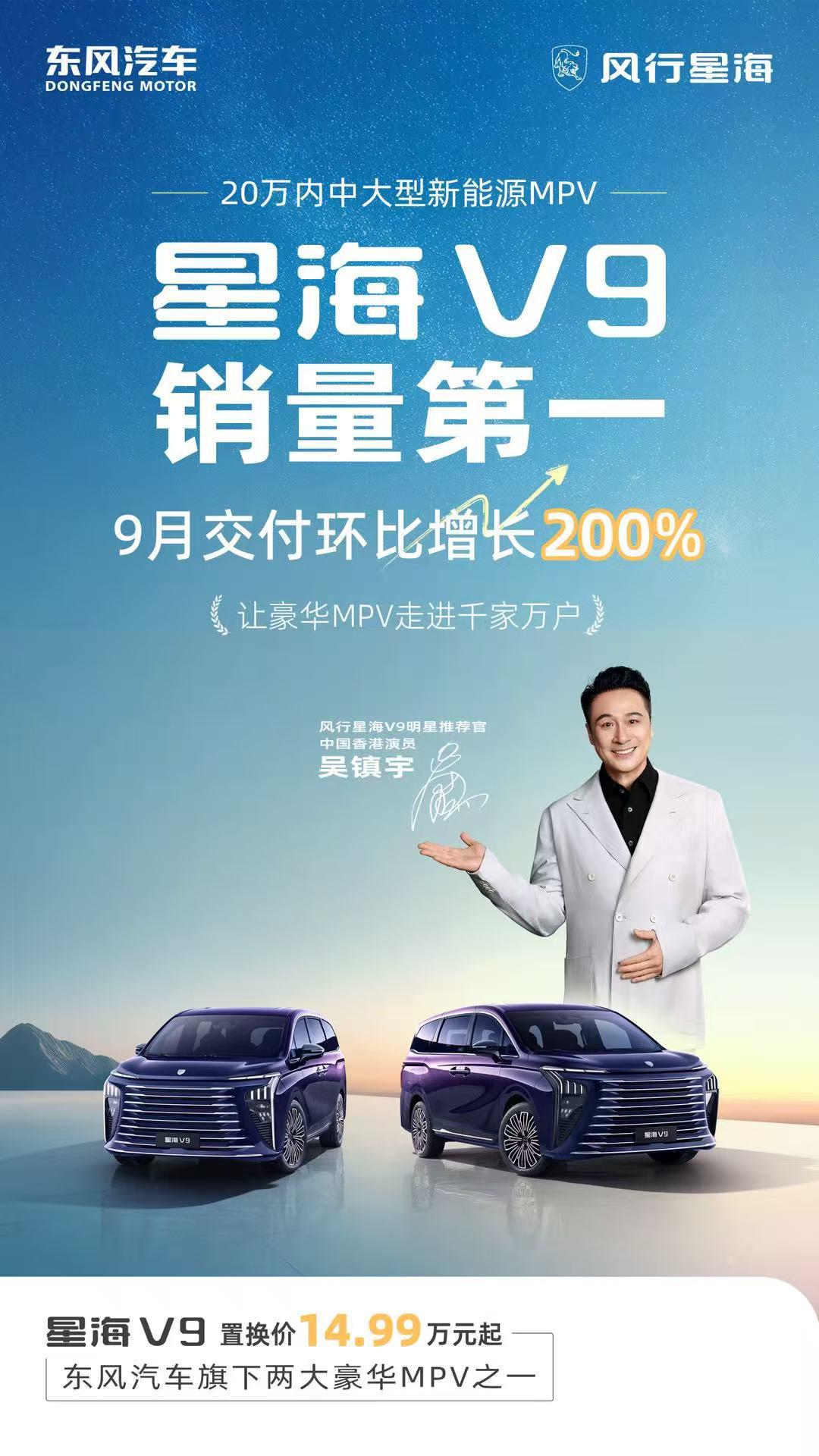 东风风行9月交付过万了! 其中星海V9在MPV领域打了错位战 20万内中大型新能源MPV市场 这辆5.2米的绿牌MPV确实给到不少装备 日常给到200km纯电续航,第三排座椅下沉 大屏幕和第二排舒适性座椅都齐全 20万内新能源MPV这标签确实很香 东风风行还是擅长做自己的MPV领域【来自懂车帝车友圈】