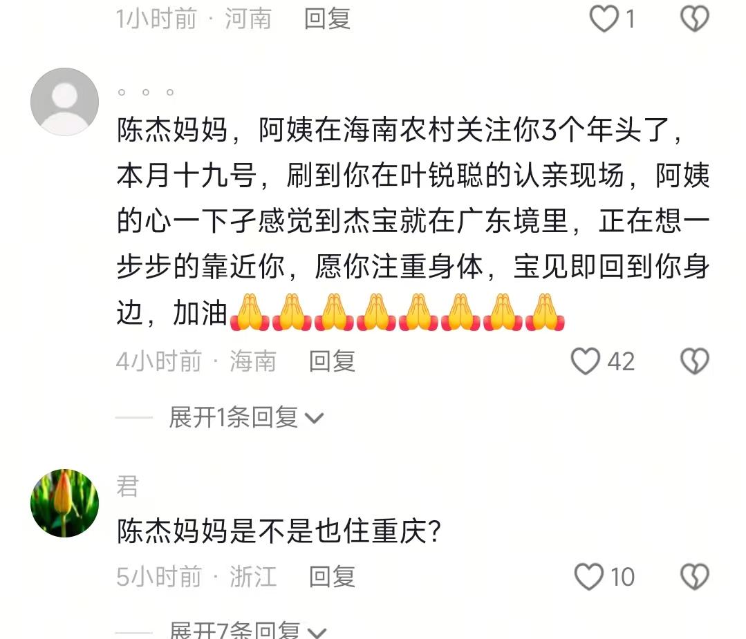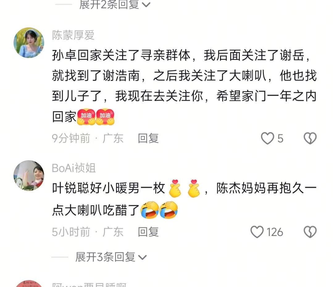 看到叶锐聪认亲的视频,我忍了 看到陈杰妈妈站在角落,我也忍了 可是看到她跟叶锐聪抱抱、摸后背,跟自己儿子一样,我实在忍不住了 那天刷叶锐聪认亲的视频,我直接绷不住了——陈杰妈妈站在角落,眼睛死死盯着叶锐聪妈妈的手,后来,直接跟叶锐聪抱抱、摸后背,跟自已儿子一样,看着令人心酸!她的手指跟着动,指尖还在微微抖。一半是替人高兴,一半是把自己的心揪成了疙瘩,那模样,比哭还让人难受。说实话,换作是我,早崩溃了。 叶锐聪妈妈后来跟其他寻亲妈妈聊天,一句“兄弟,你们的娃也是我的”,当场就有人哭了。这话被拍下来发网上,立马被顶上热搜,全在夸“为母则刚”“YYDS”。本来我也跟着夸,后来才发现,这标签跟个紧箍咒似的,把人捆得死死的。 前阵子认识个寻亲的张姐,半夜给我发语音,哭着说对着孩子婴儿照摸了俩小时,第二天还得麻溜去派出所查线索。我问她咋不在镜头前哭,她叹口气:“怕人说我不够坚强,对不起孩子,咋整?” 哎呀妈呀,那瞬间我才明白,这“刚”哪是天生的,全是硬扛出来的。 别人常说凡事有因缘,像种子得等合适的节气才发芽。陈杰妈妈找了这么多年,在别人的团圆现场强装镇定,说不定就是在等那口气。叶锐聪妈妈那句“兄弟”,与其说是承诺,不如说是寻亲妈妈们的暗号——咱都是同路人,再难也得雄起。 有次刷到陈杰妈妈的直播,有人评论“你得坚强,不然陈杰回来找不到你咋办”。我晕,这啥逻辑啊?调研说82%的寻亲妈妈都深夜崩溃过,凭啥镜头前就得装铁人?上次有个妈妈认亲现场哭瘫,居然有人说“太脆弱,成不了事”,这不是胡扯吗? 本来想安慰张姐“都会好的”,后来发现我说的全是废话。她跟我说,有次线索断了,她在桥洞底下坐了一夜,不敢告诉任何人,就怕被说“摆烂”。你说这扯不扯?“为母则刚”本该是夸人的,咋就变成了“不准脆弱”的紧箍咒? 刷短视频时,十个寻亲视频八个是团圆戏,孙卓回家、叶锐聪认亲,评论区全是“太棒了”“万岁”。我以前还傻呵呵地觉得“寻亲越来越容易了”,直到看了公益组织的报告才懵——全国失踪儿童找回率才30%,70%的家庭还在等。这不是幸存者偏差吗? 不过有个惊喜点,宿迁公安靠“专业+数据”找回率99.96%,湛江公安平均4小时就能找着人。这说明不是找不着,是线索不够啊!但网友倒好,对着陈杰妈妈说“你看别人都找到了”,咋不说说那70%还在熬的人?郁闷死了。 说真的,我以前也只会评论“加油”,直到张姐跟我说,有次网友帮她转了条深圳的线索,虽然没成,但至少让警方多了个方向。这才明白,光喊“雄起”没用,实际行动才顶用。 我觉得,下次刷到陈杰妈妈这样的寻亲帖,别只评论“加油”,真不如帮着转一转线索,或者看看当地有没有寻亲志愿者群加进去。宿迁公安靠线索多才能搞掂,咱普通人帮着扩散,说不定就能凑齐那“因缘”。毕竟光说不做太没意思,实际帮一把才真得劲,你说对不?