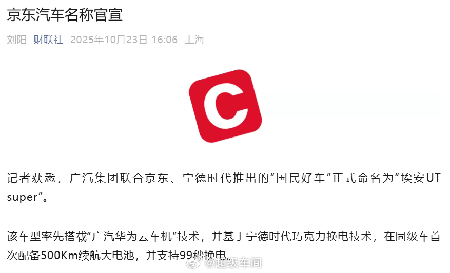 “国民好车”正式命名:埃安UT super[思考]京东汽车京东回应造车传闻